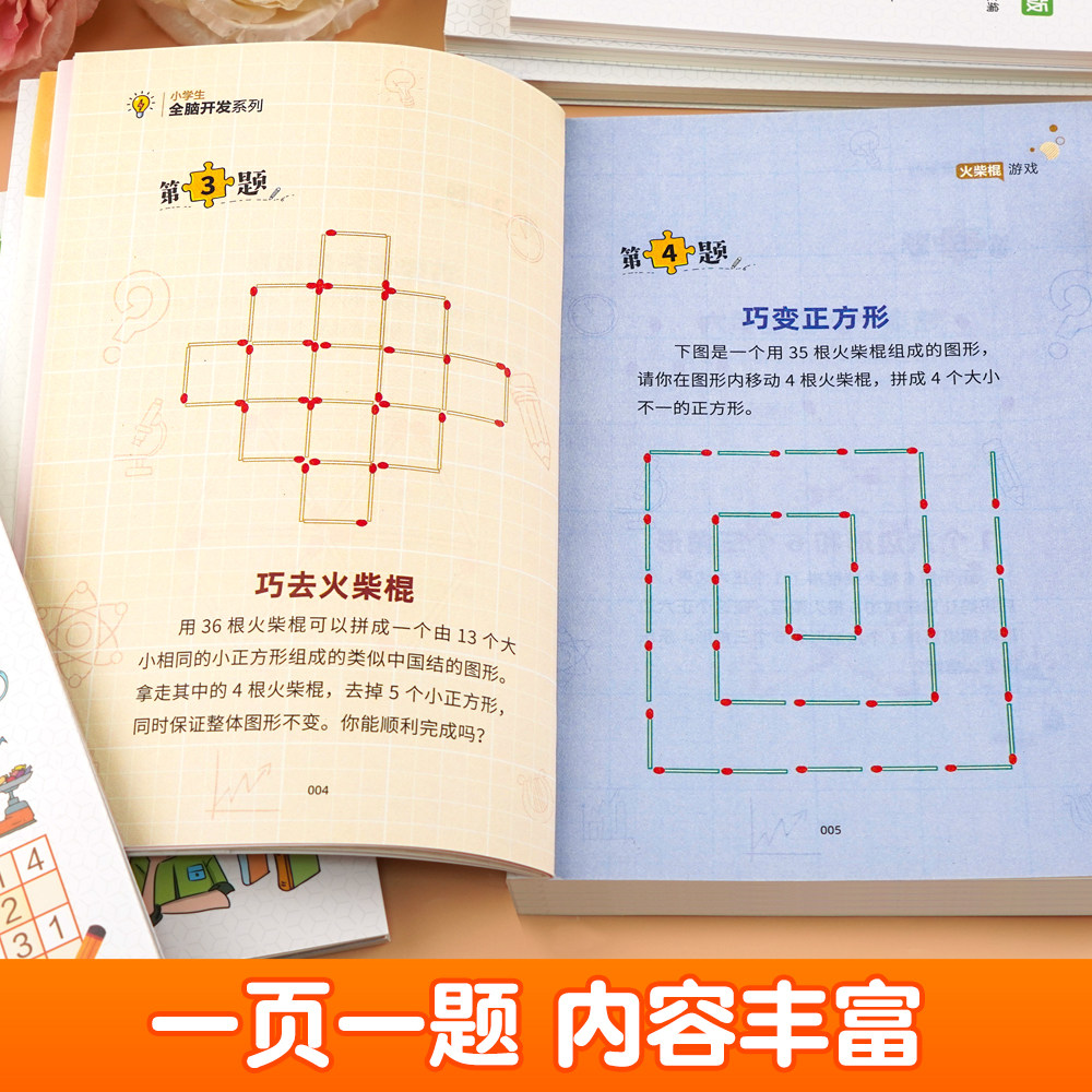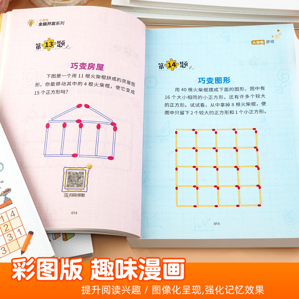 火柴棍游戏彩图版 小学生益智游戏 6--9-12岁潜能开发 儿童逻辑思维能力专注力训练 左右脑开发早教培养益智游戏书