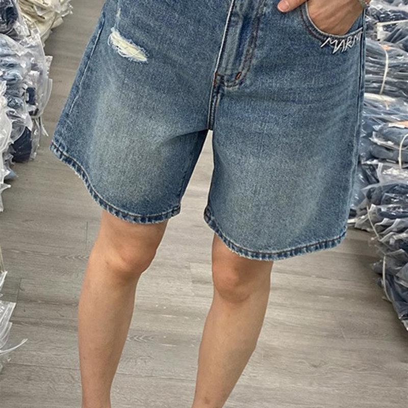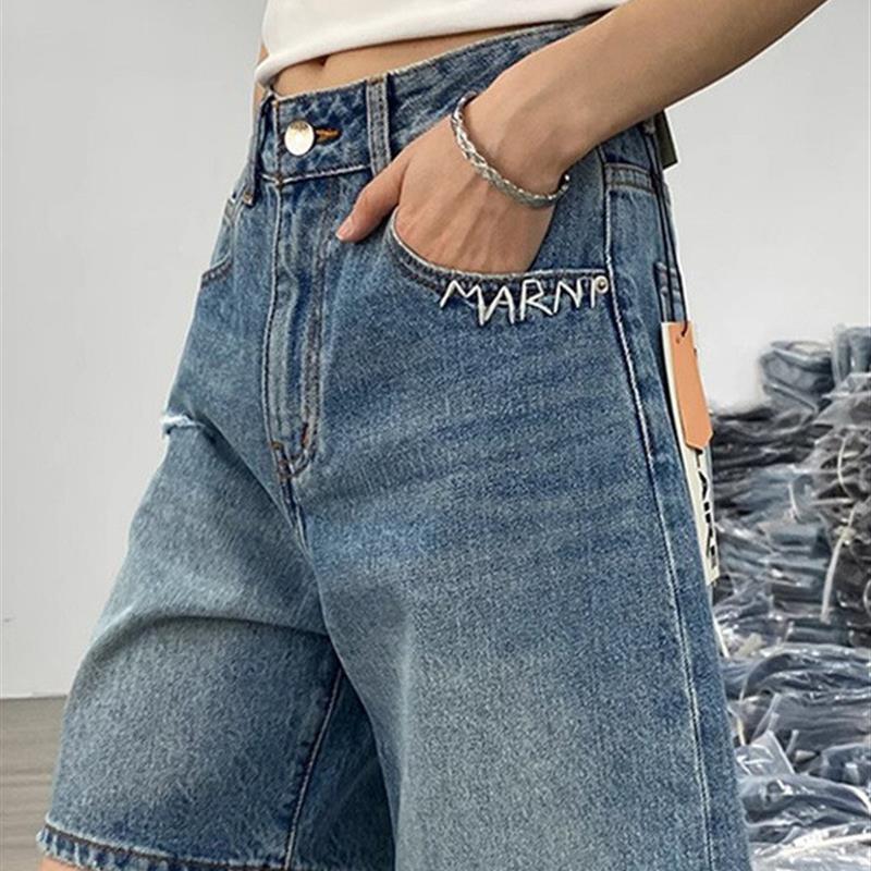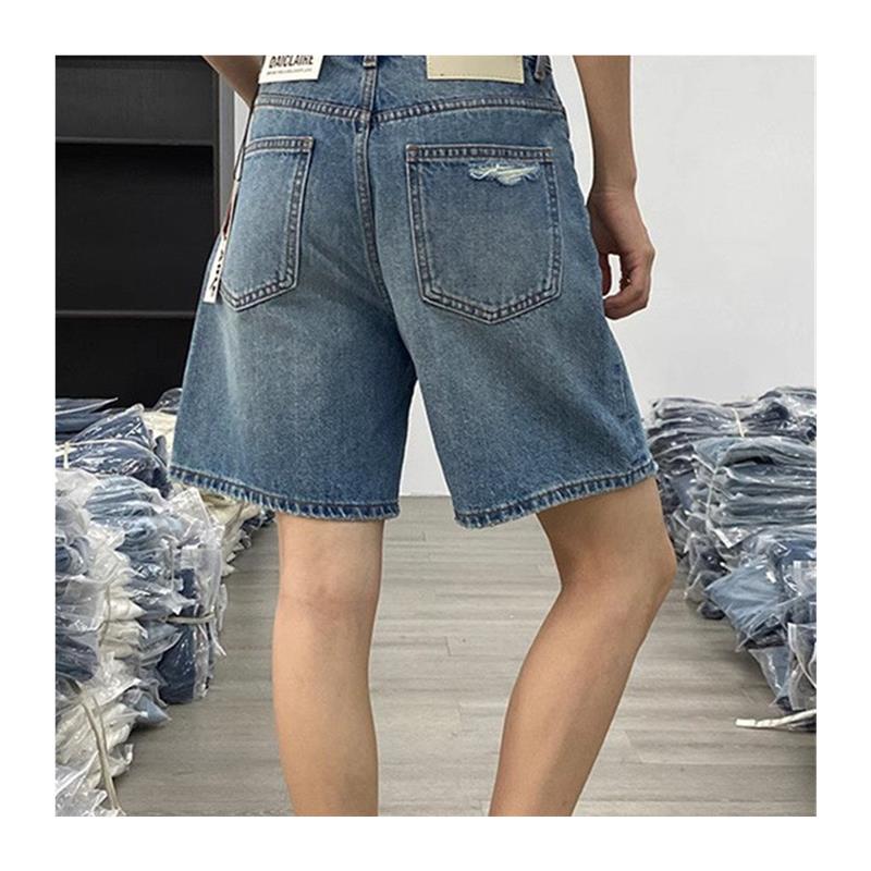 2025夏季薄款破洞五分牛仔裤女高腰宽松大码显瘦直筒阔腿5分短裤