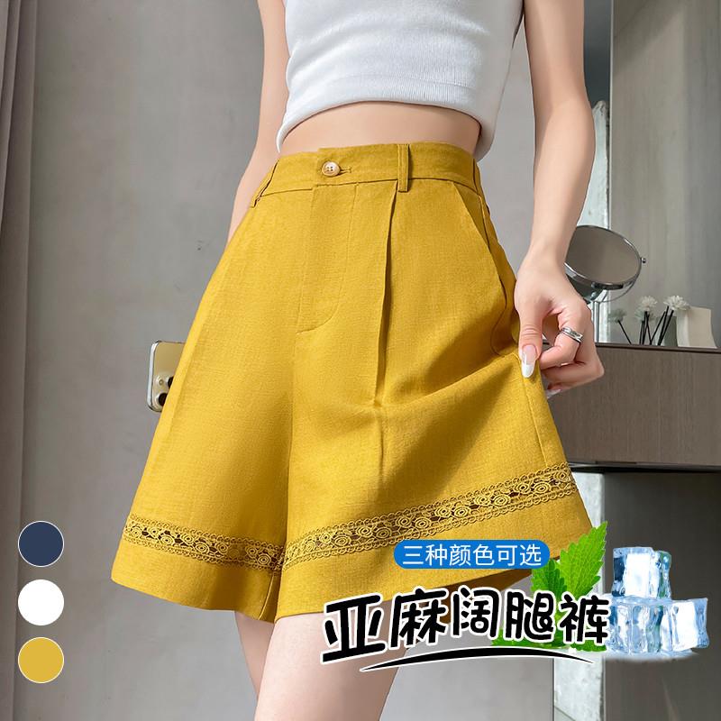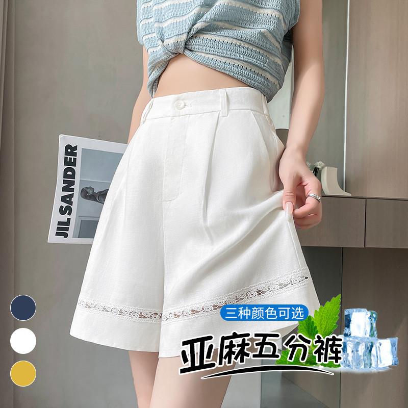 冰丝亚麻西装短裤女夏季薄款小个子高腰显瘦宽松a字阔腿五分裤子