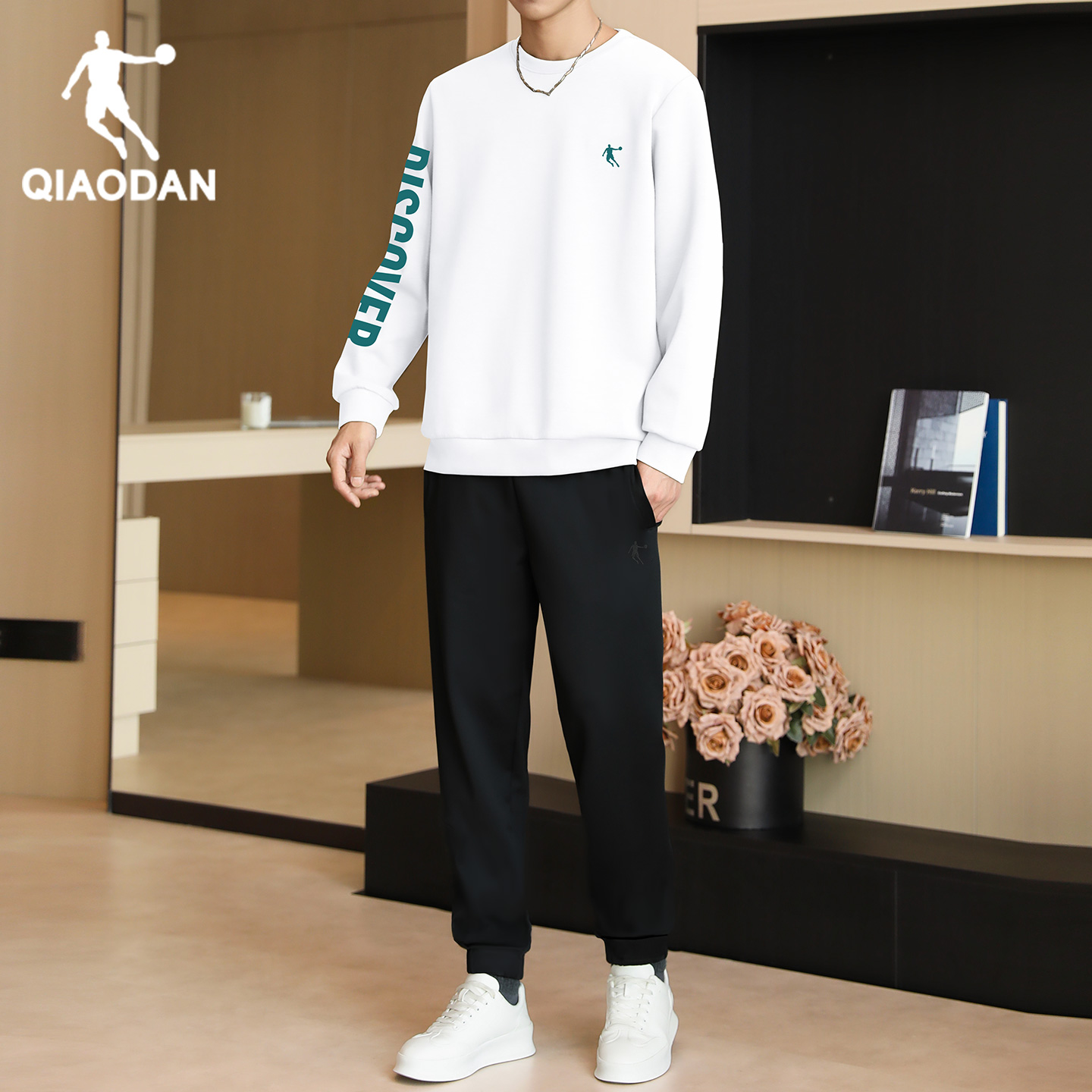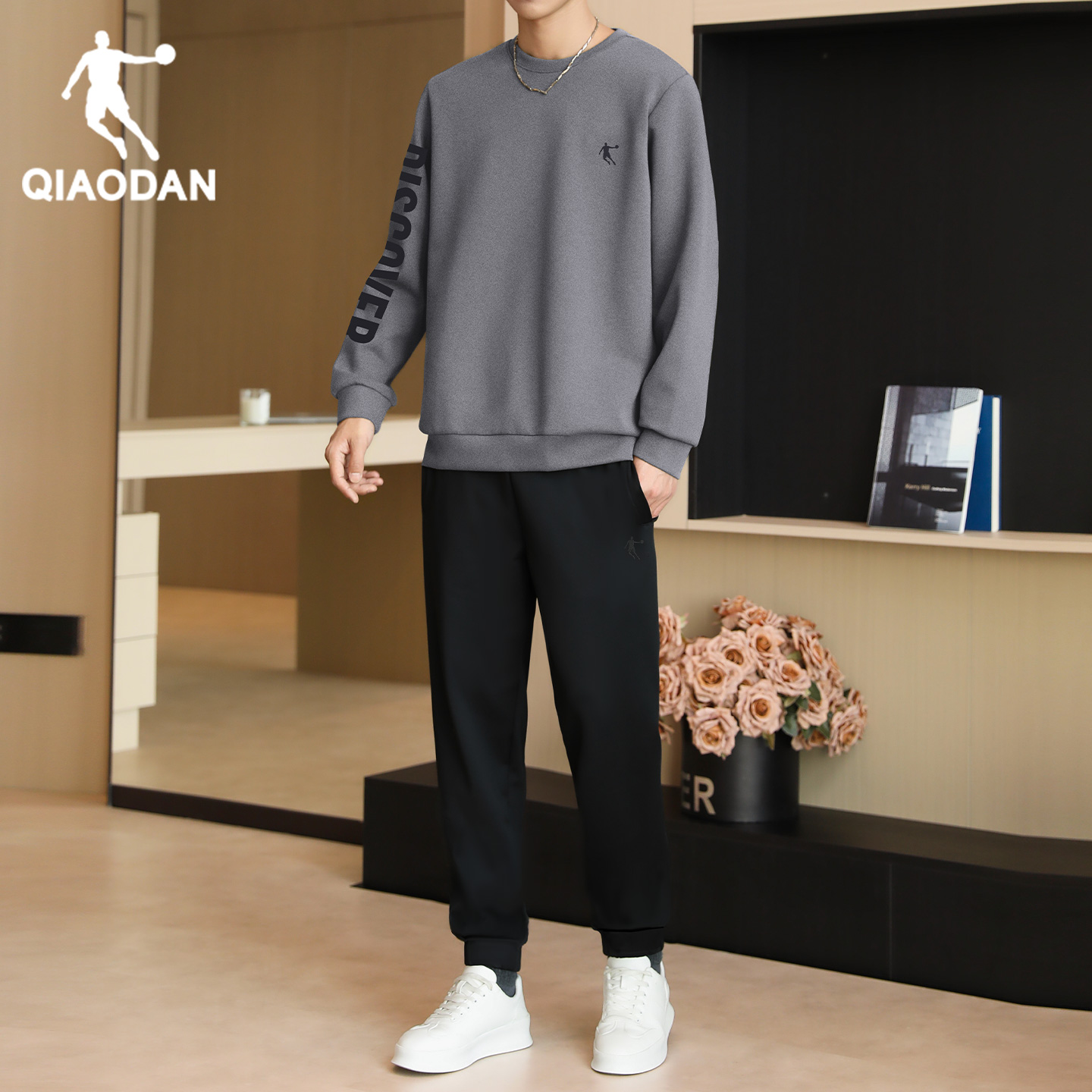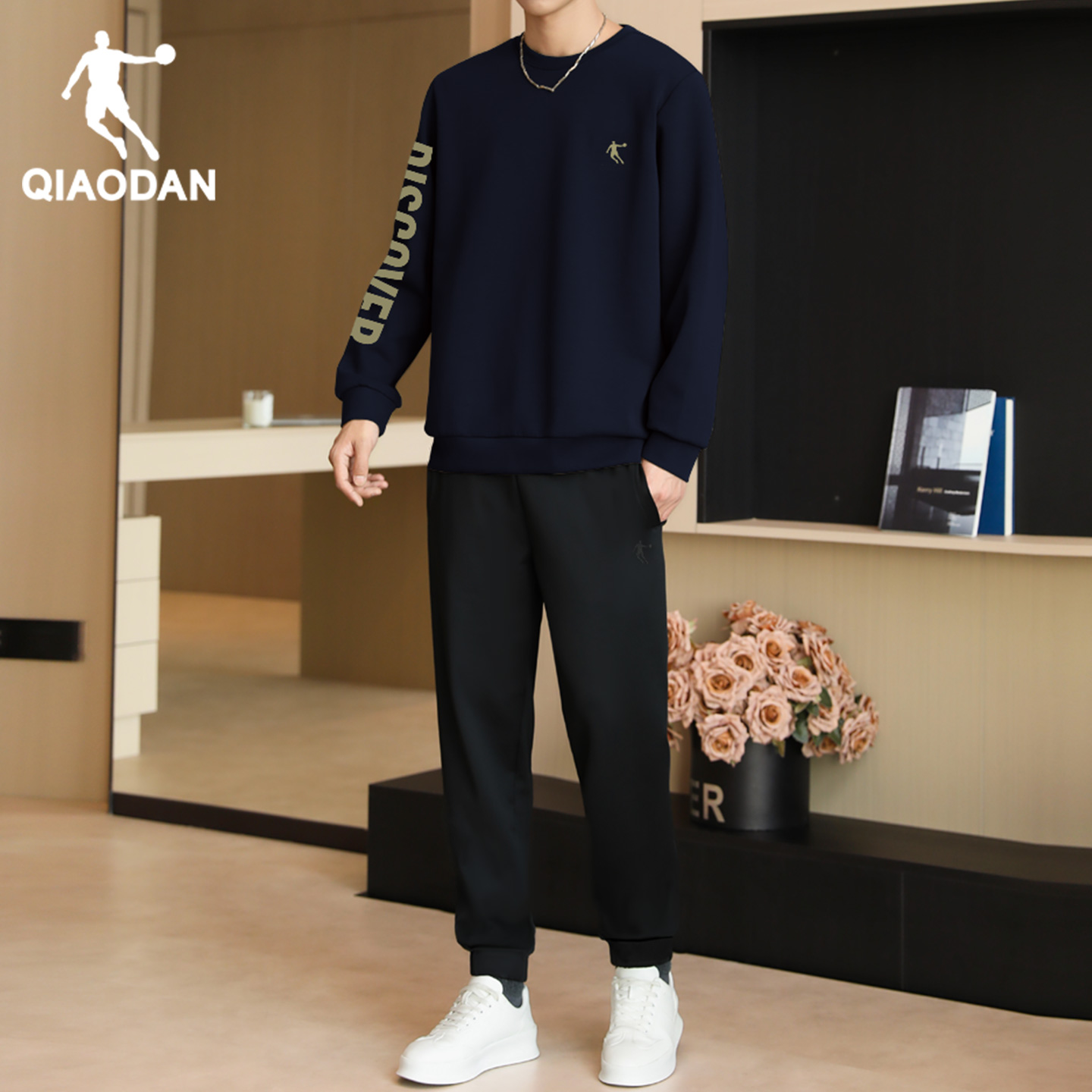 乔丹运动套装男士冬季新款圆领宽松卫衣束脚卫裤正品跑步上衣长裤