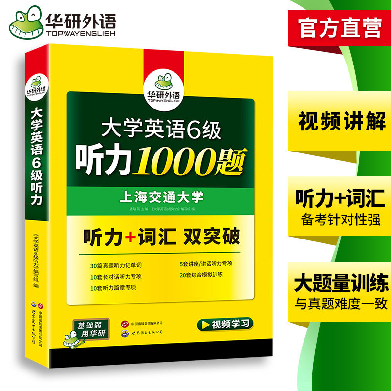 华研外语英语六级听力1000题专项训练书备考2026年6月大学英语六级听力强化词汇单词考试真题试卷阅读理解翻译与写作文cet6四六级