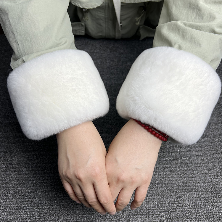 超大100%獭兔毛袖口毛单卖皮草整皮护手腕防风大衣苏绣香云纱袖套