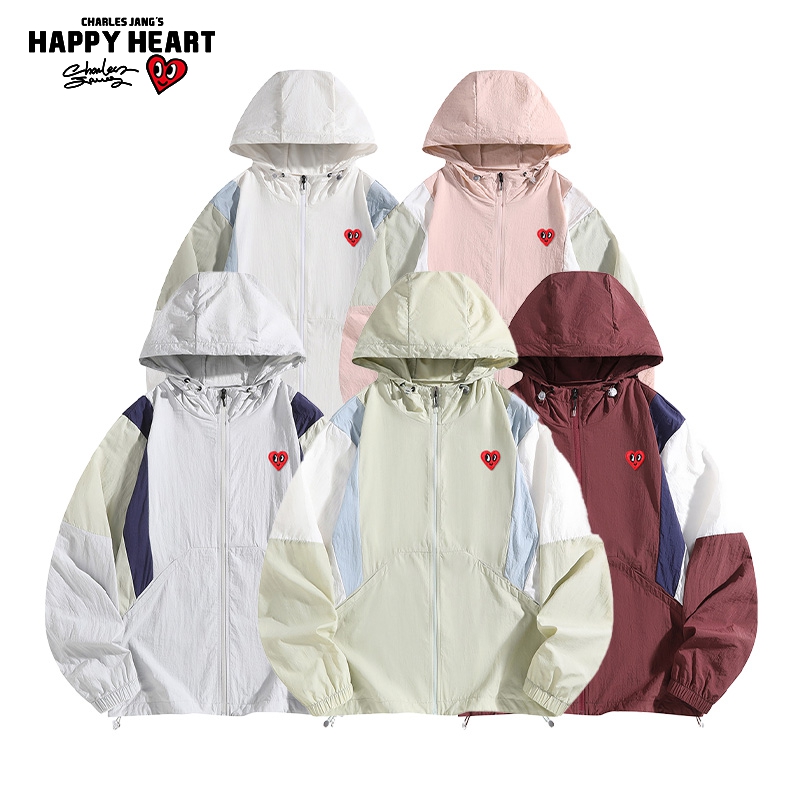 查尔斯桃心 2025年夏季拼接撞色防晒衣男连帽皮肤衣薄款冰丝外套