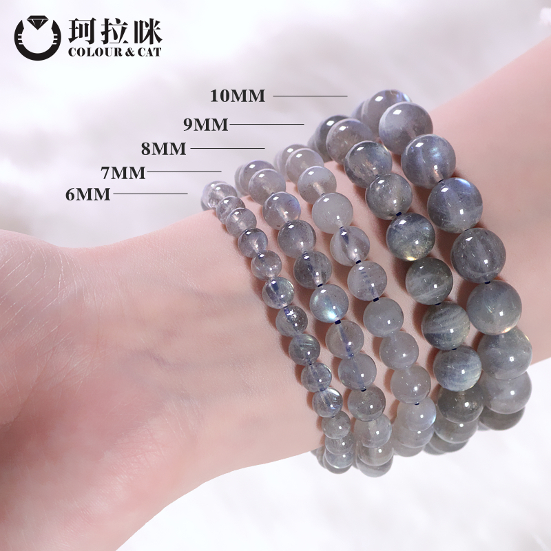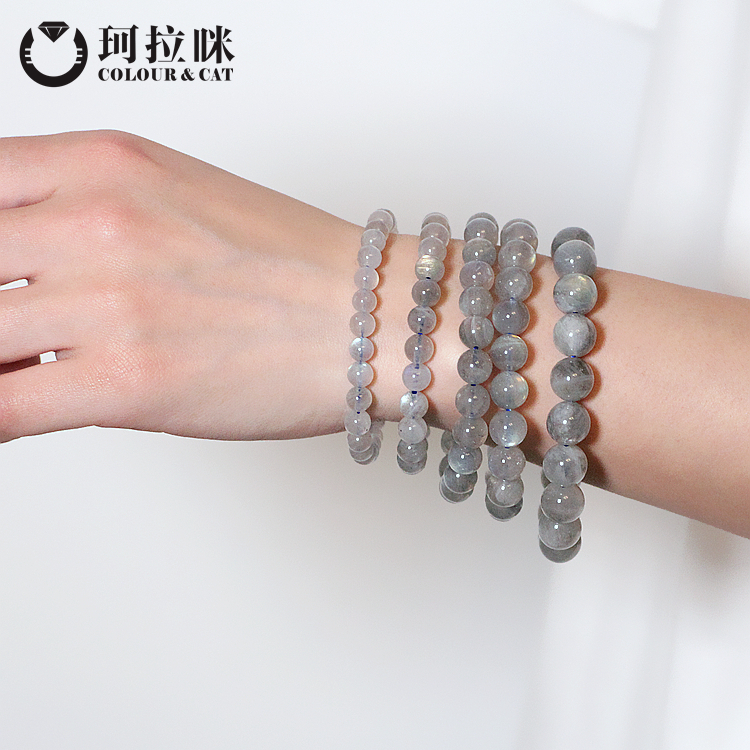 珂拉咪 天然冰种灰月光石手链女款 拉长石手串水晶饰品礼物超值款