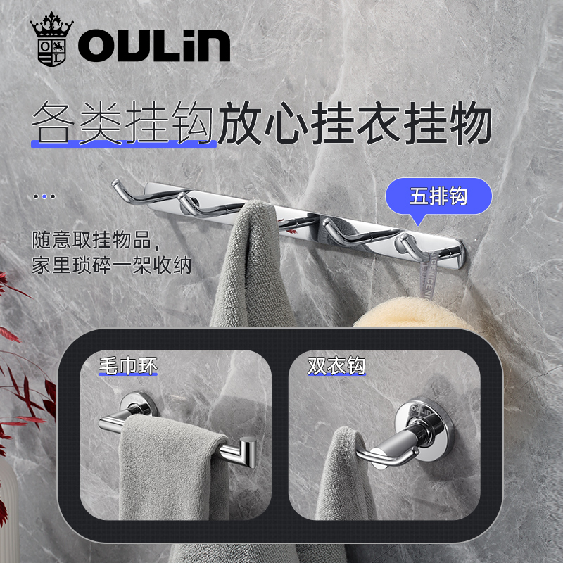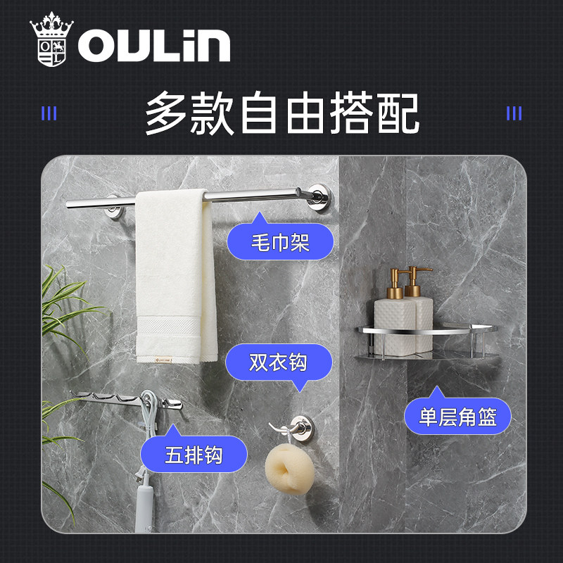 欧琳卫浴挂件套装不锈钢挂件卫浴五金套件毛巾架 浴巾架置物架