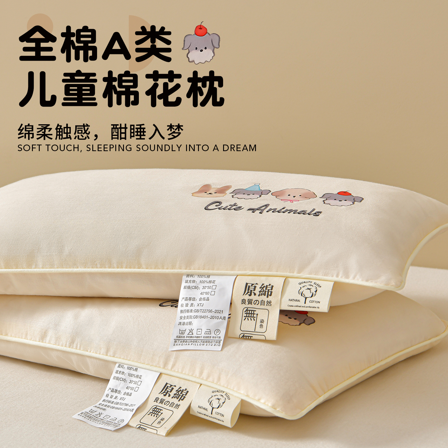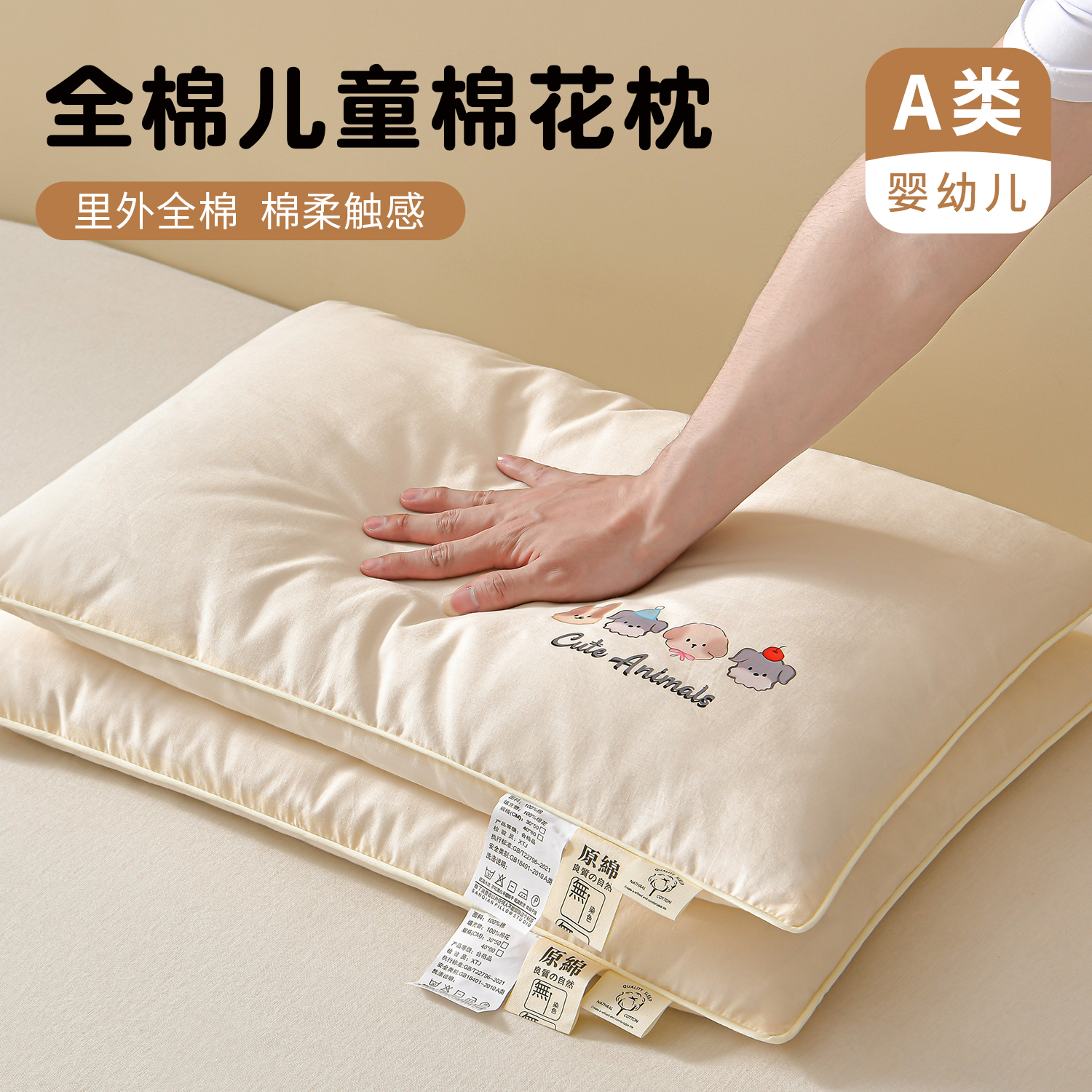 儿童棉花枕小枕头6岁以下纯棉枕芯A类宝宝枕睡眠全棉1到3岁可拆洗