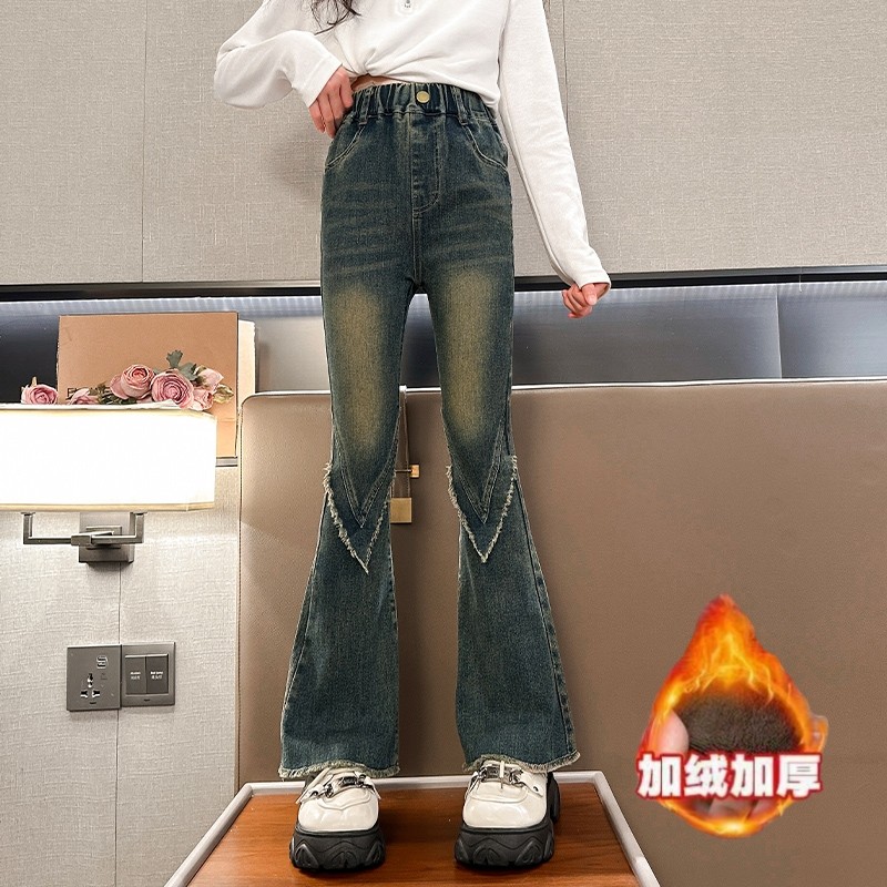 女童牛仔裤春秋季2025新款童装洋气喇叭裤中大童女孩秋冬加绒裤子