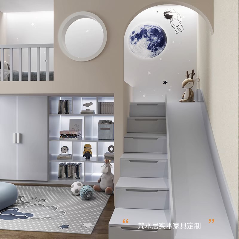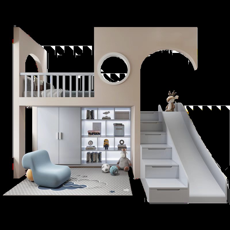 定制全实木儿童房树屋床简约上床下组合衣柜上下床子母床男滑梯床