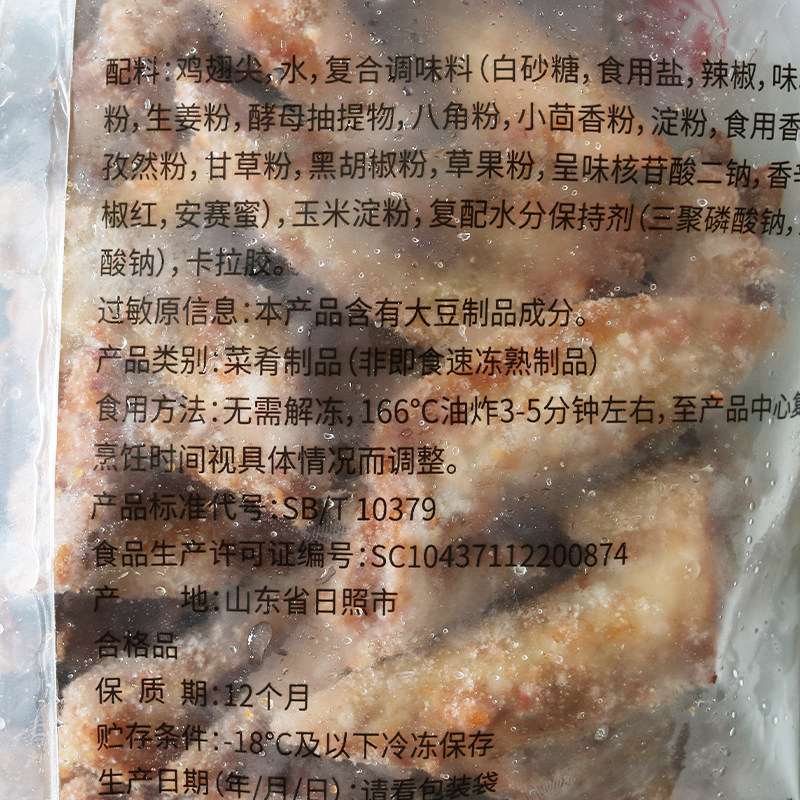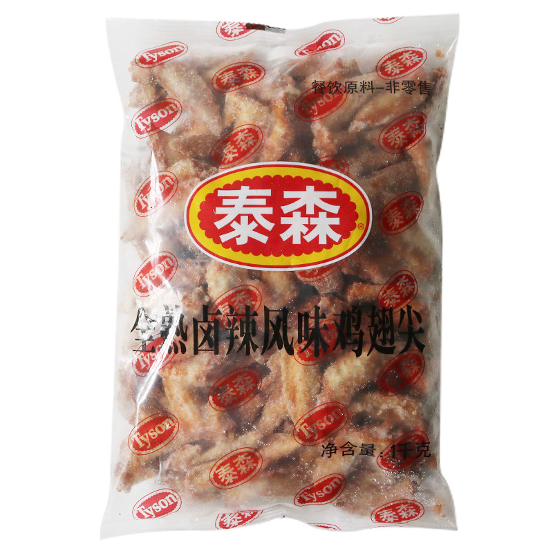 泰森全熟卤辣风味鸡翅尖1kg冷冻辣味鸡尖快餐卤味烧烤小吃鸡架