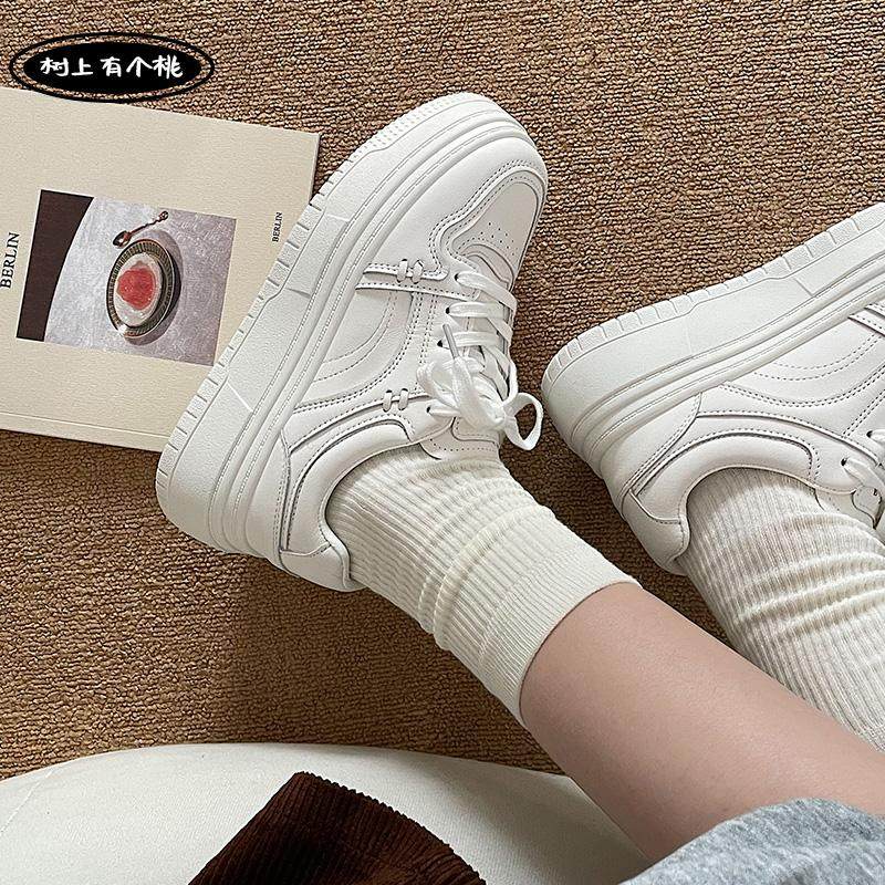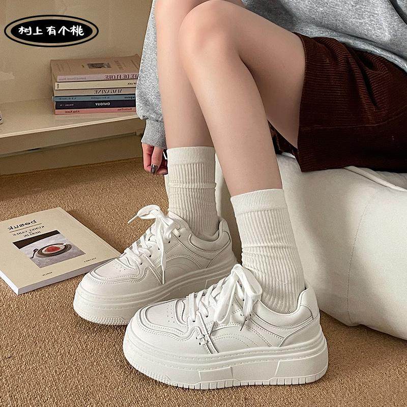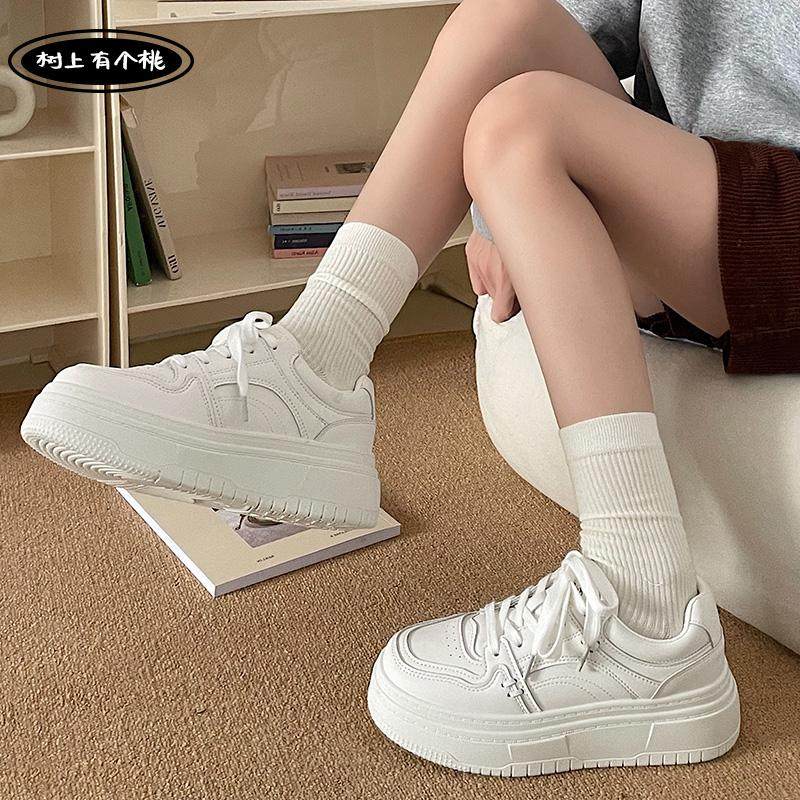 树上有个桃厚底小白鞋女2025冬季新款增高百搭运动休闲鞋板鞋子