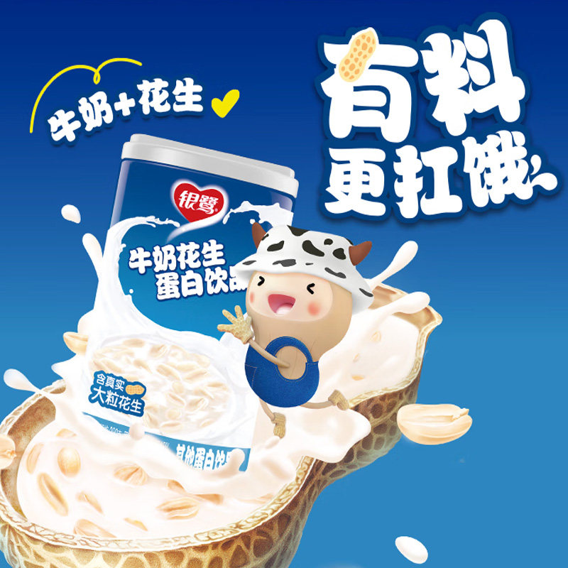 银鹭牛奶花生蛋白饮品280g\360g*12罐整箱装含花生颗粒早餐牛奶