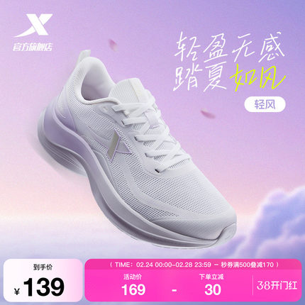 特步轻风丨跑鞋女款春季新款跑步鞋减震网面透气轻便软底运动鞋子