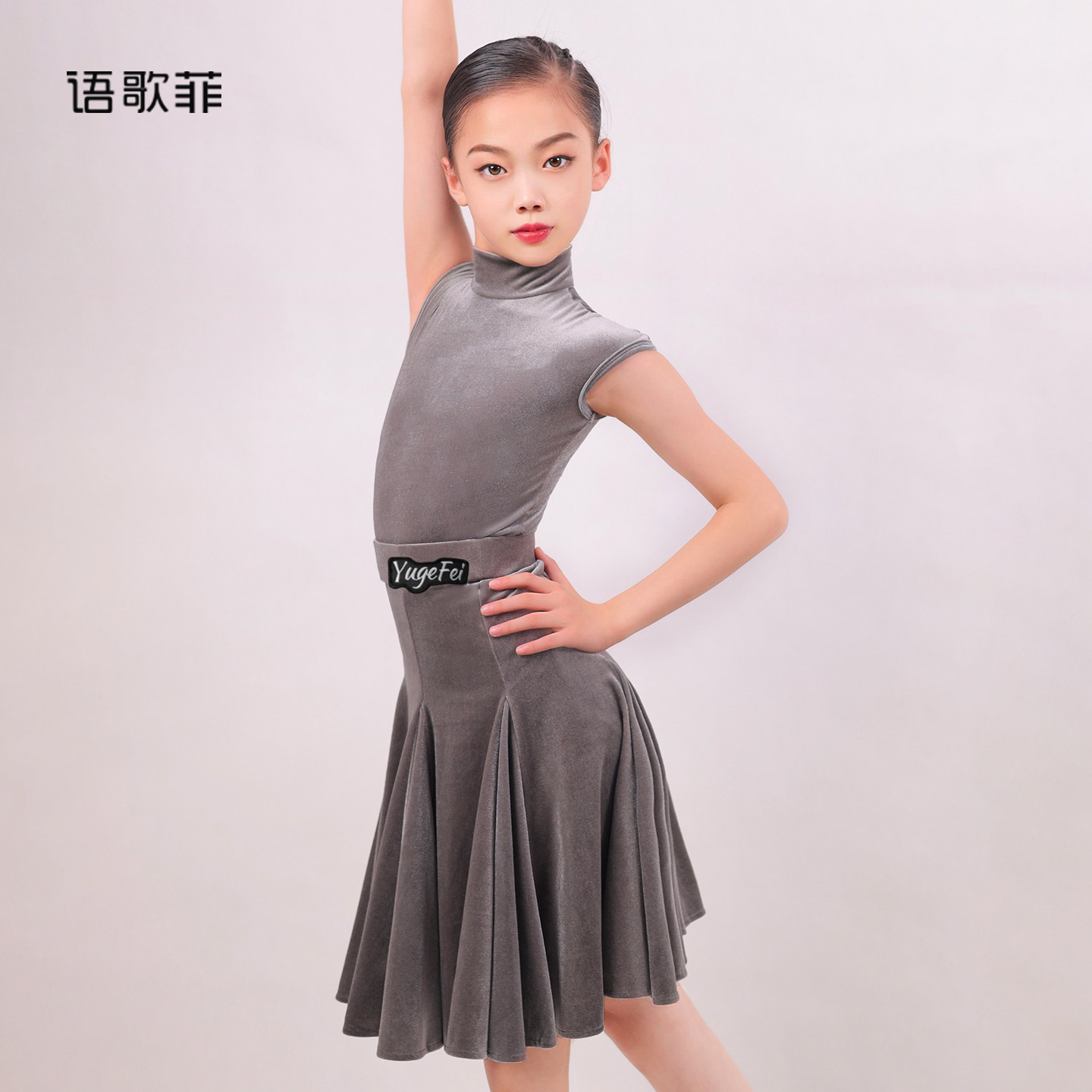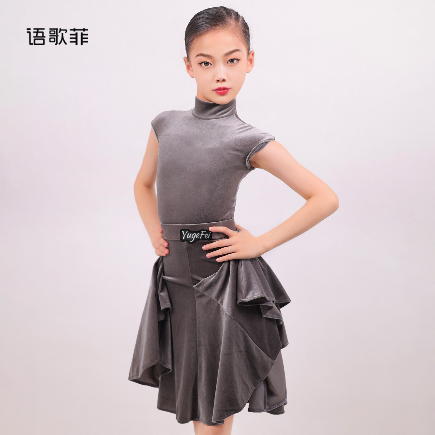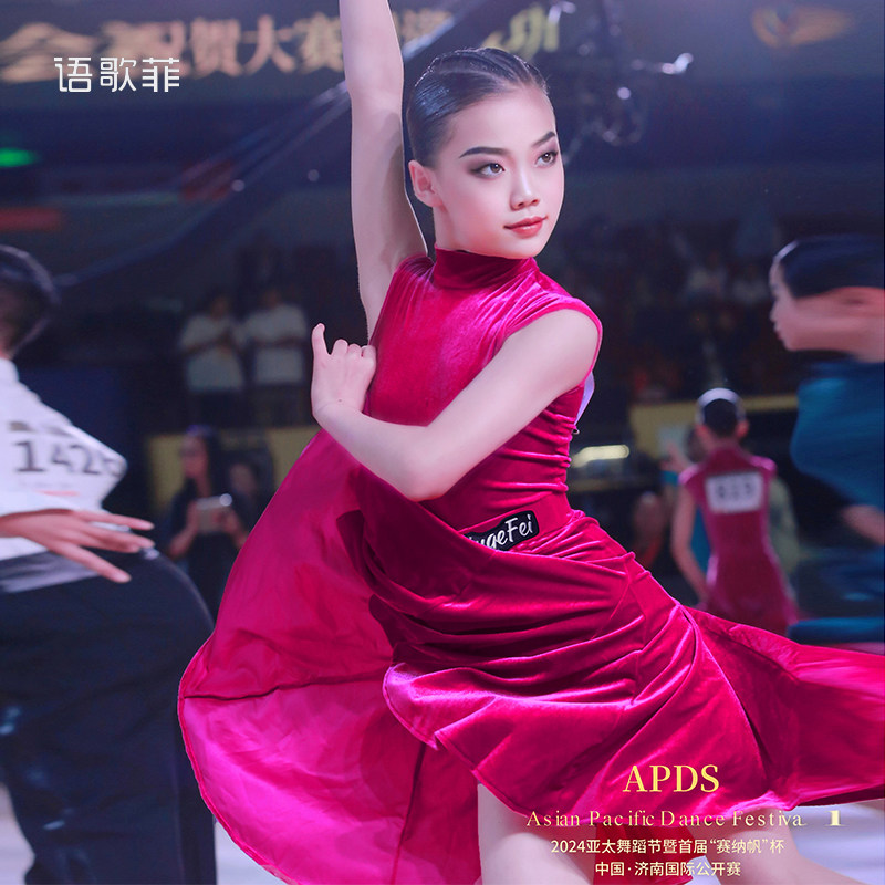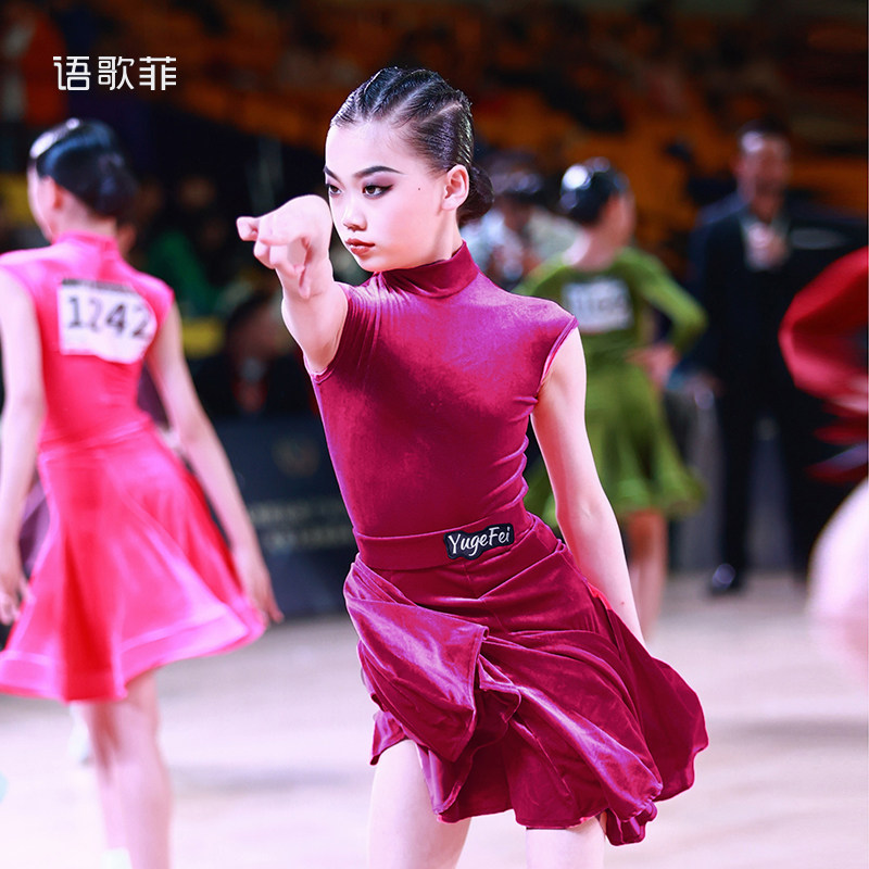 语歌菲拉丁舞比赛规定服无鱼骨高领包肩袖夏短袖韩国绒分体艺考服