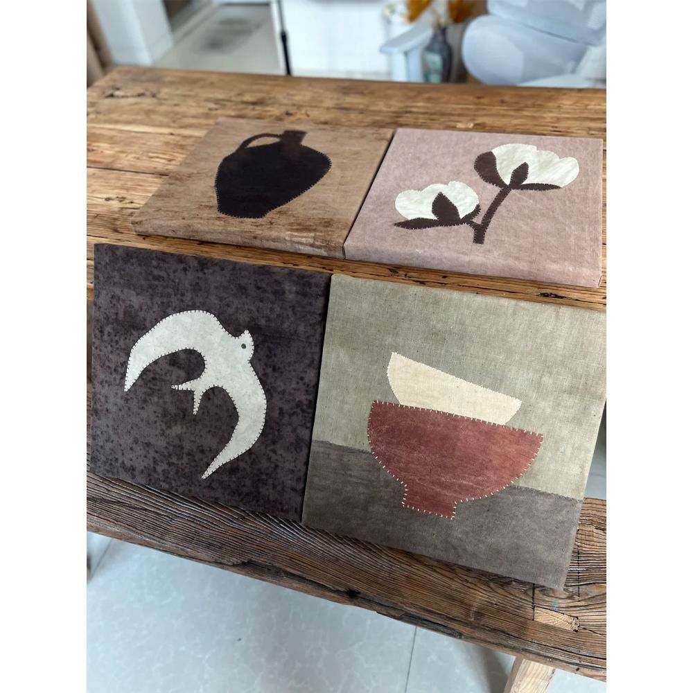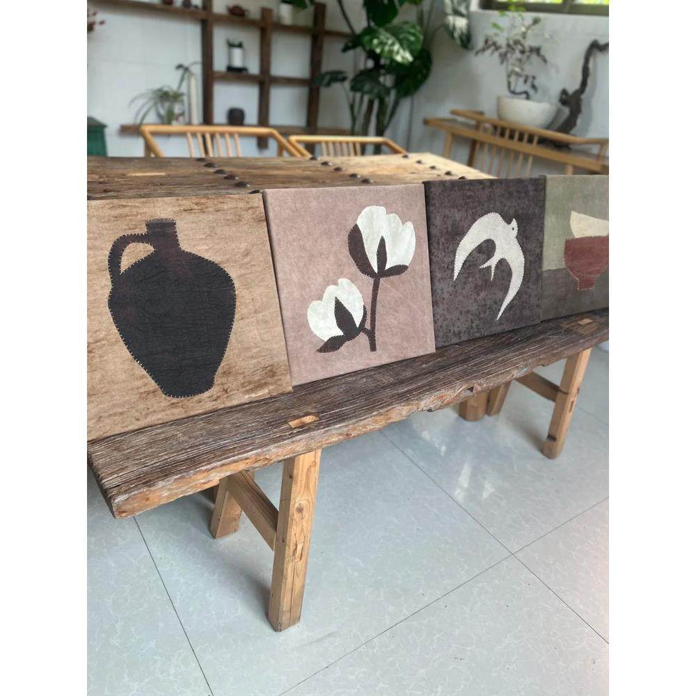 飞鸟与花组合一套民宿客厅装饰画中古风抽象酒店咖啡店高级感挂画
