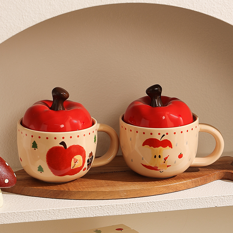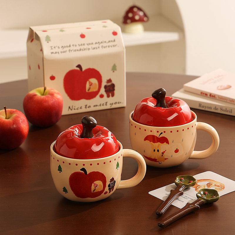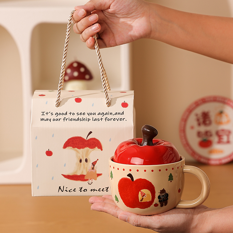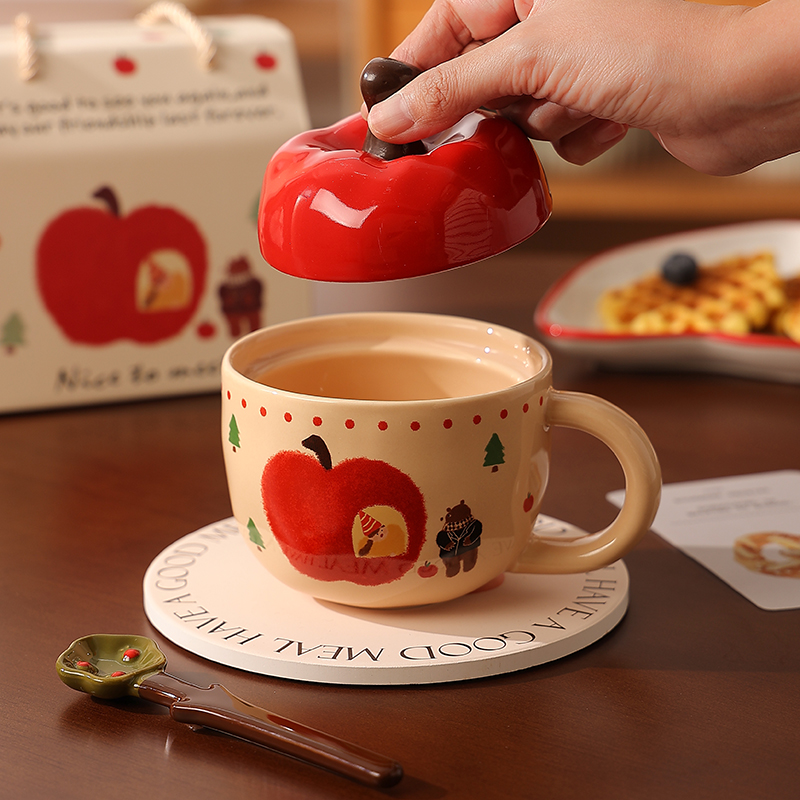 可爱苹果马克杯带盖带勺女生杯子伴手礼闺蜜生日礼物办公室喝水杯
