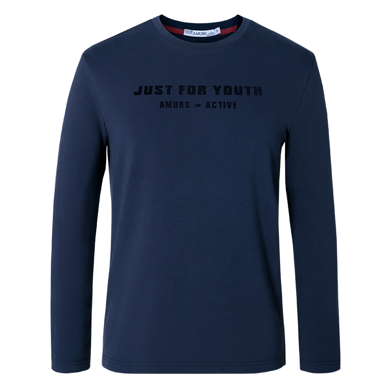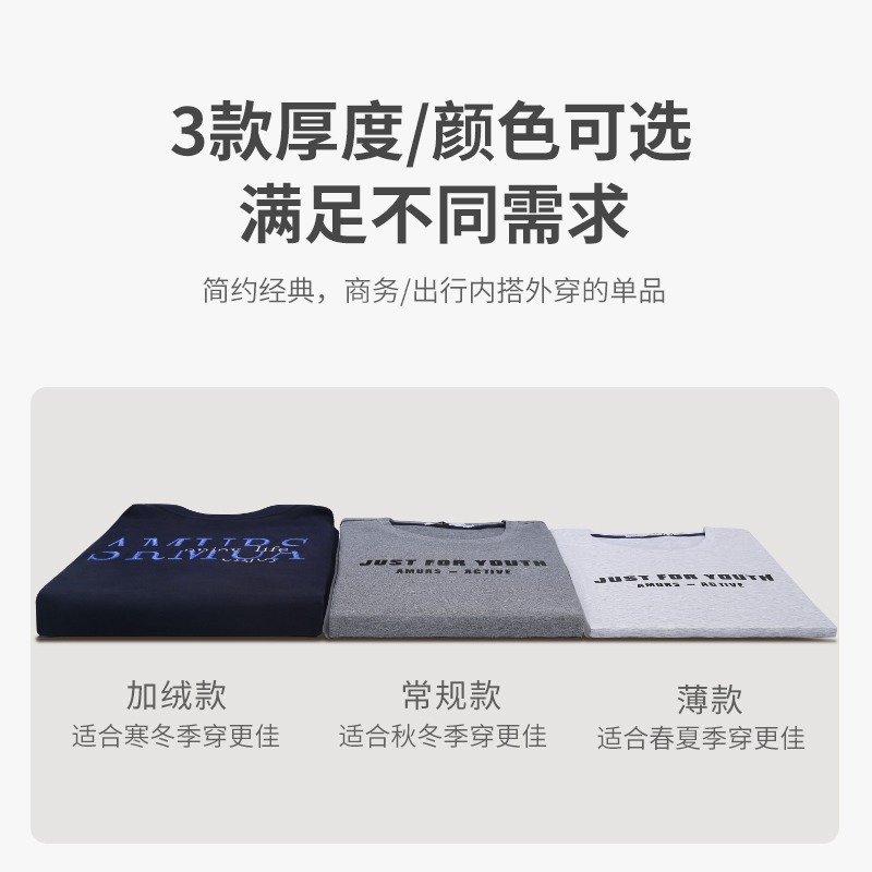 爱缪斯高端圆领长袖t恤2025新品男士大码印花纯棉休闲打底衫