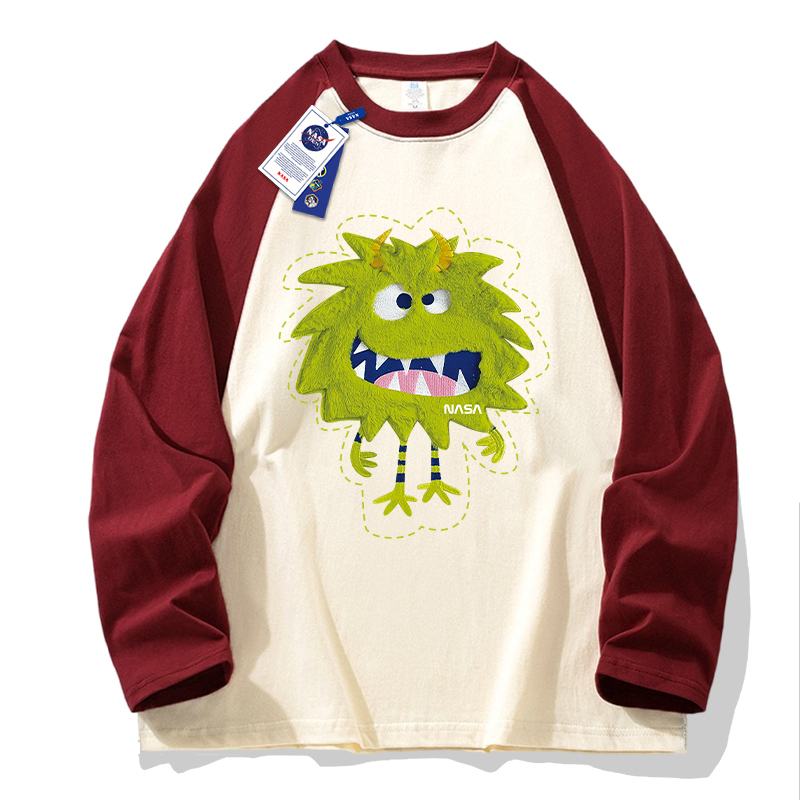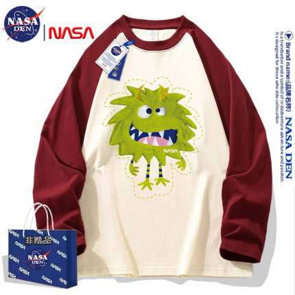 NASA联名秋冬季撞色拼接插肩长袖上衣男女设计感美式宽松撞色t恤