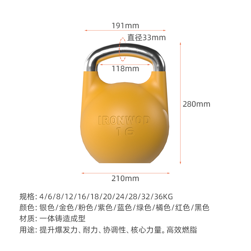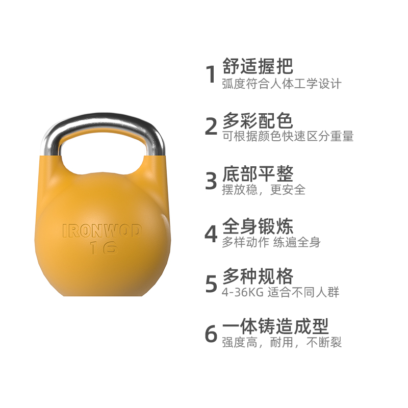 IRONWOD竞技壶铃女士健身家用竞赛专业实心 练臀翘臀男士力量哑铃