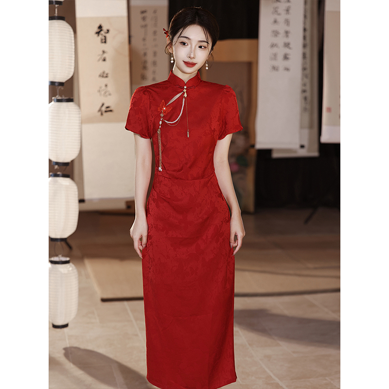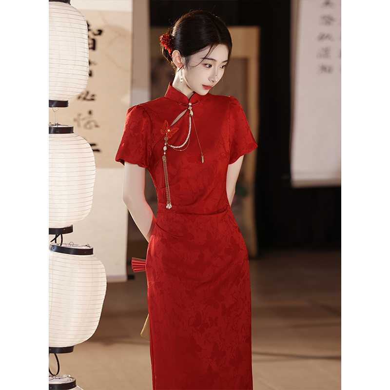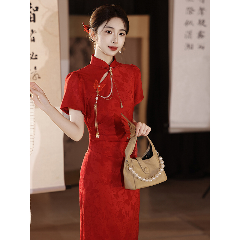 红色改良旗袍敬酒服新娘2025新款夏新中式婚服结婚订婚礼服连衣裙