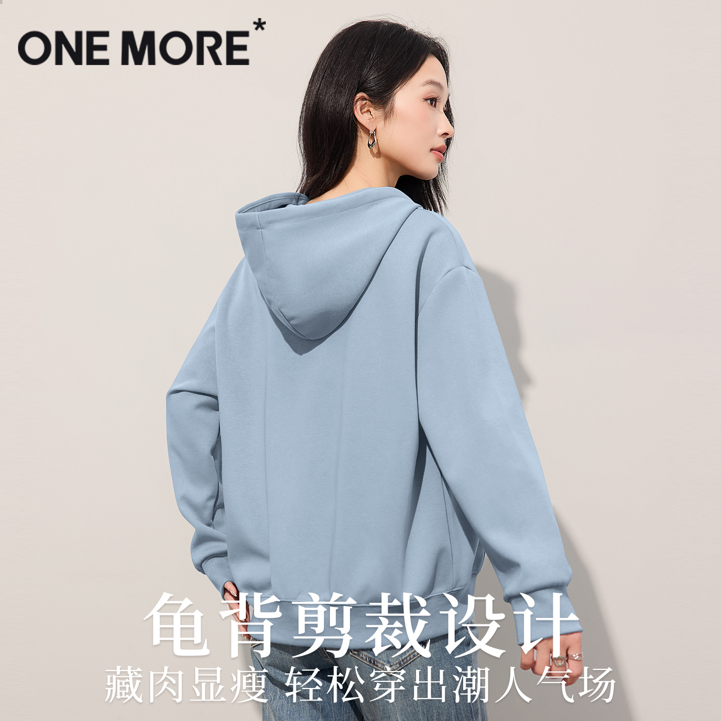 one more卫衣外套女款2025新款秋季运动拉链连帽衫早秋蓝色开衫Y