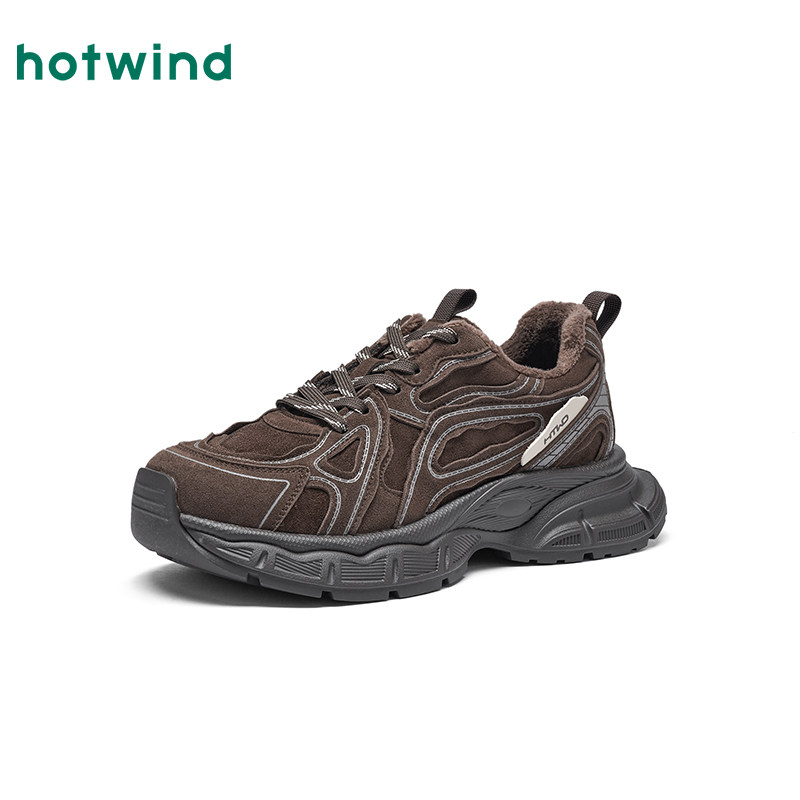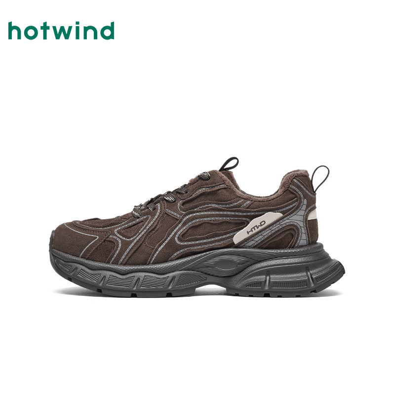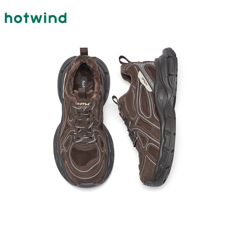 热风男鞋2025年冬季新款男士时尚厚底老爹鞋运动百搭户外网面鞋子