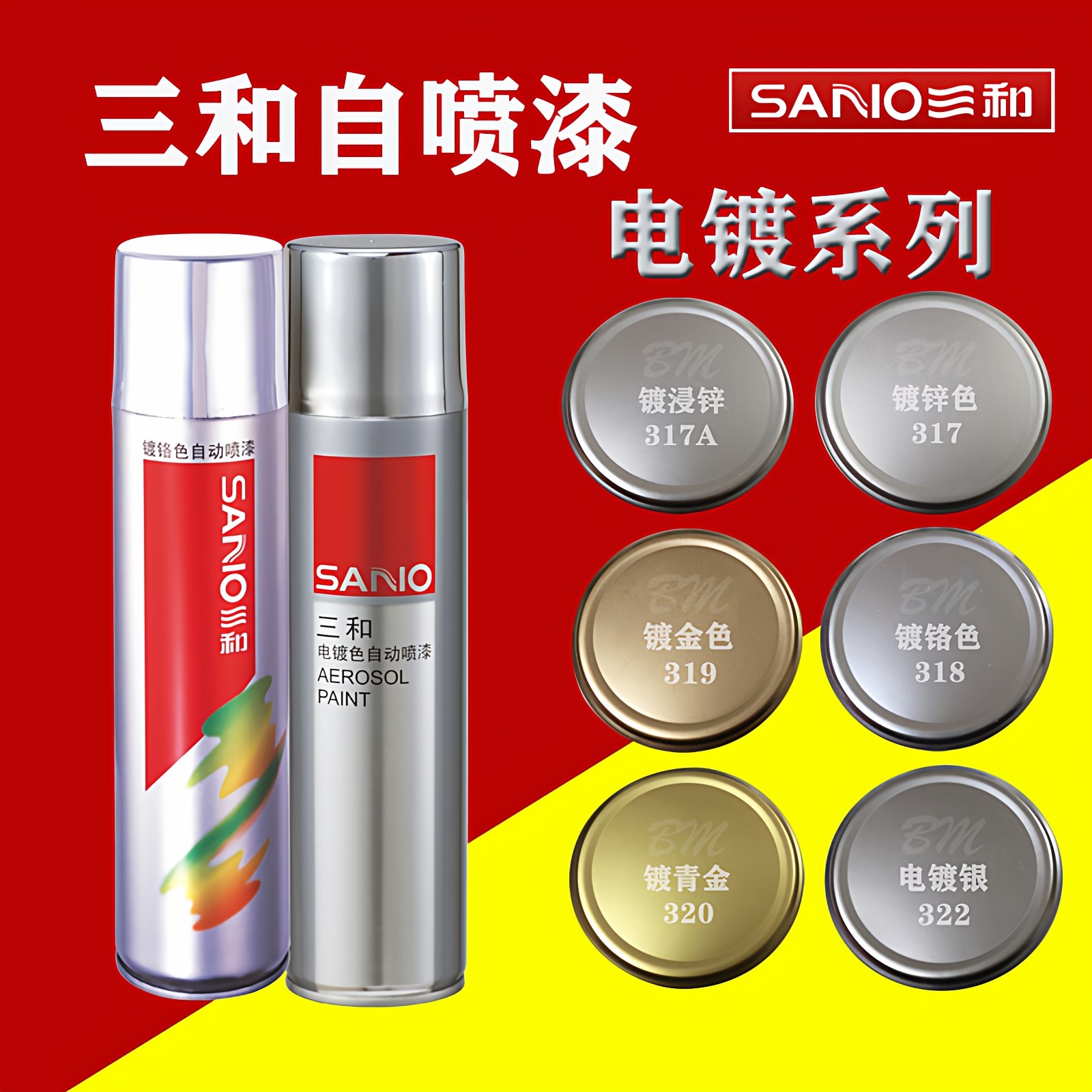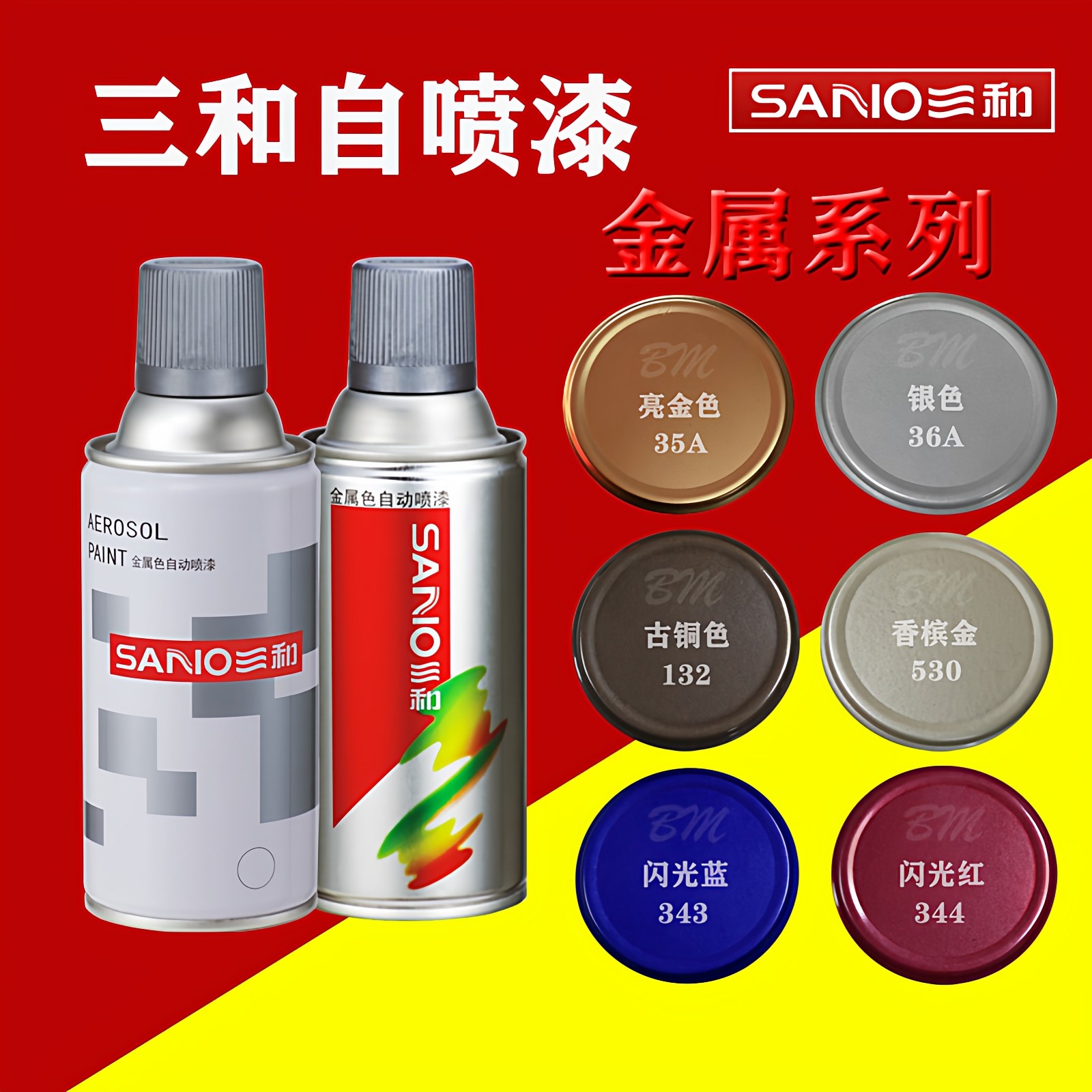 三和自喷漆手喷漆黑色红色金属白色电镀防锈手摇油漆自动银色修复