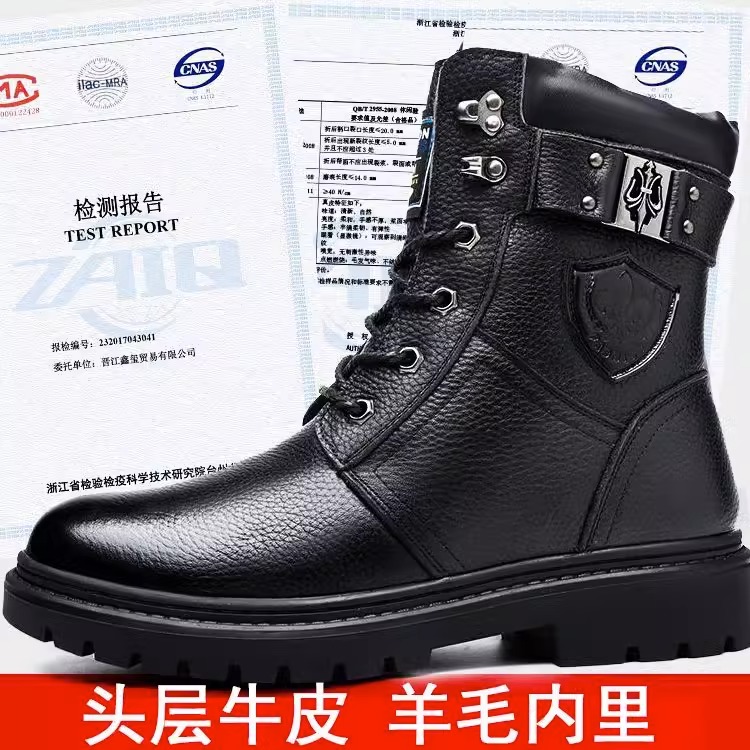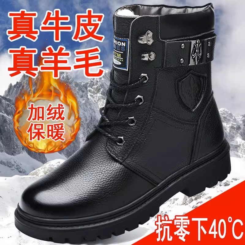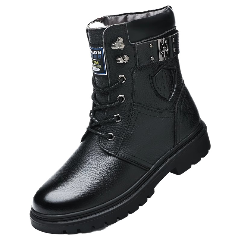 意尔康马丁靴男士冬季保暖加绒加厚高帮真皮靴子爸爸棉鞋雪地靴子