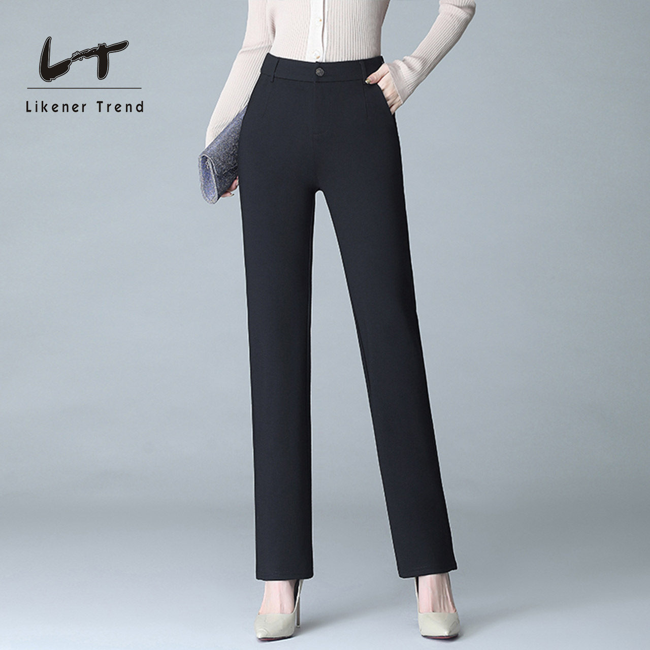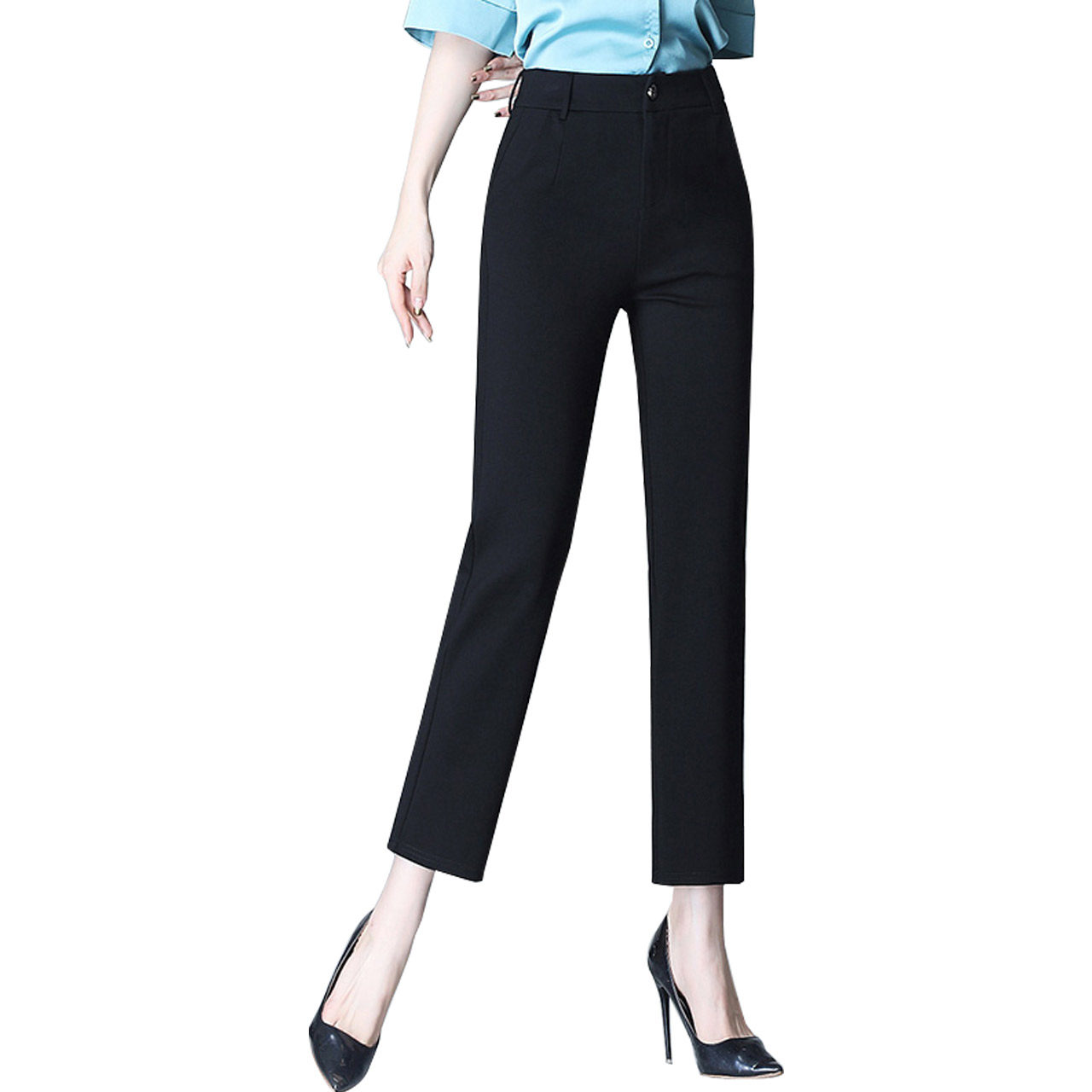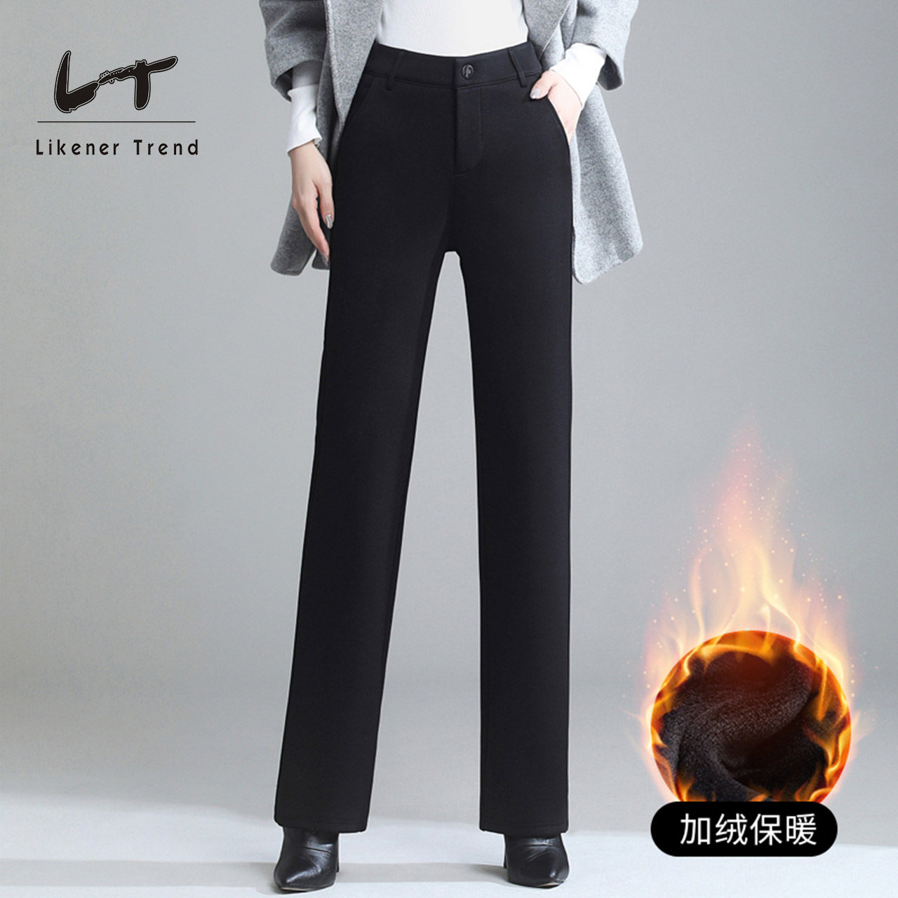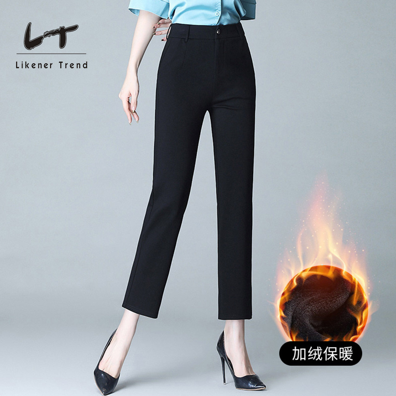 LT黑色裤子女2025新款职业直筒大码西装裤高腰垂感西裤九分裤长裤