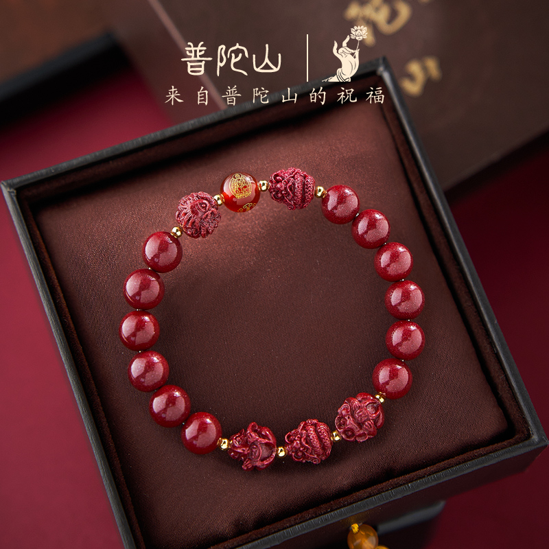 普陀山天然朱砂手串女2025蛇年本命年属蛇虎猴猪龙三合六合手链男