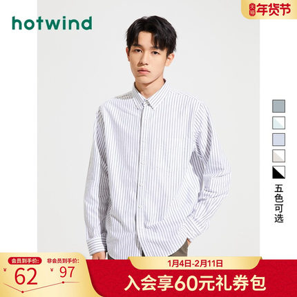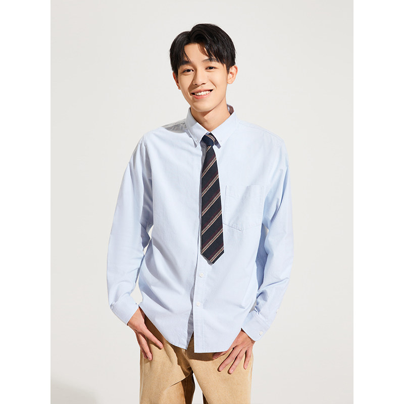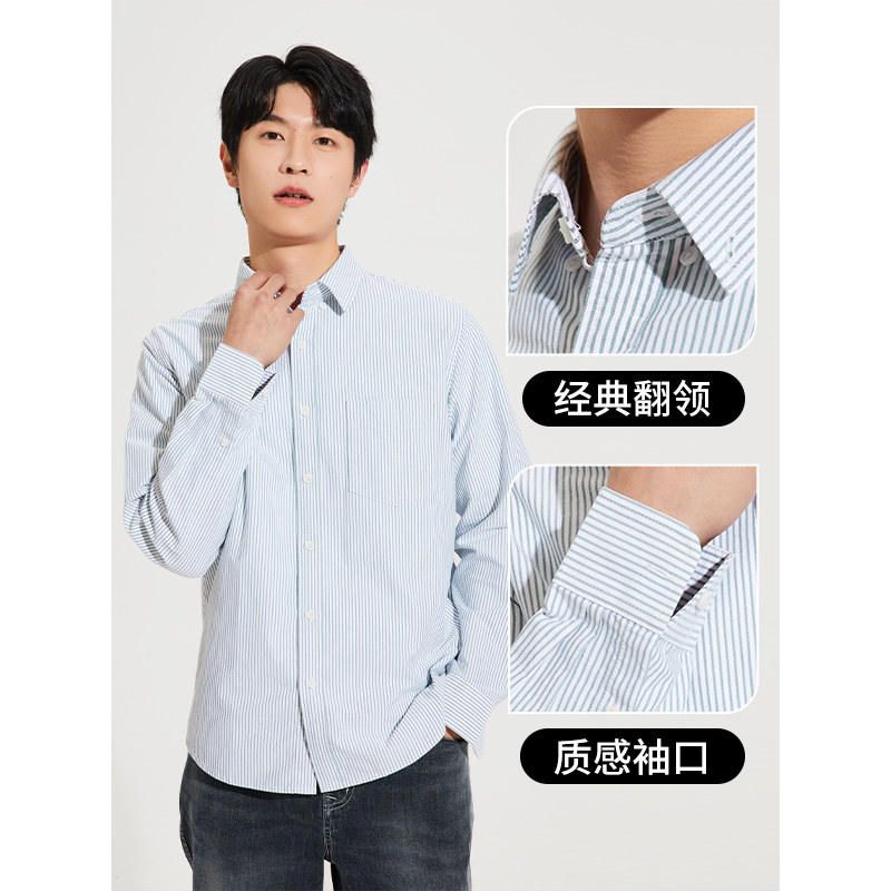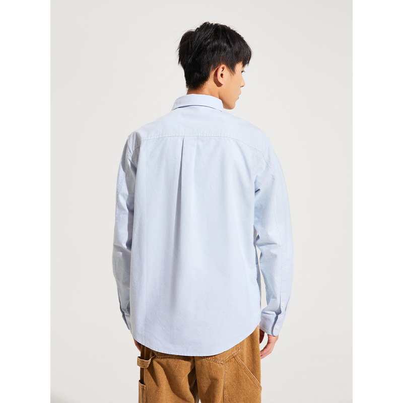 热风秋季新款男士牛津纺衬衫商务正装长袖上衣外套简约衬衫
