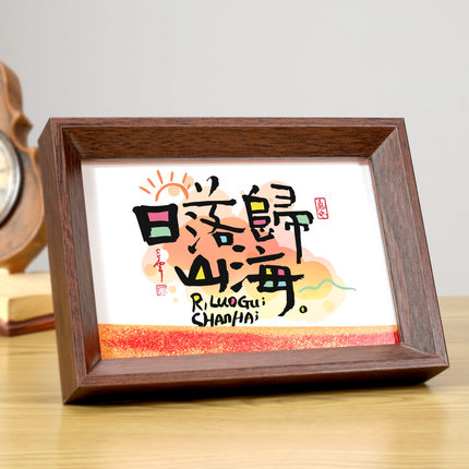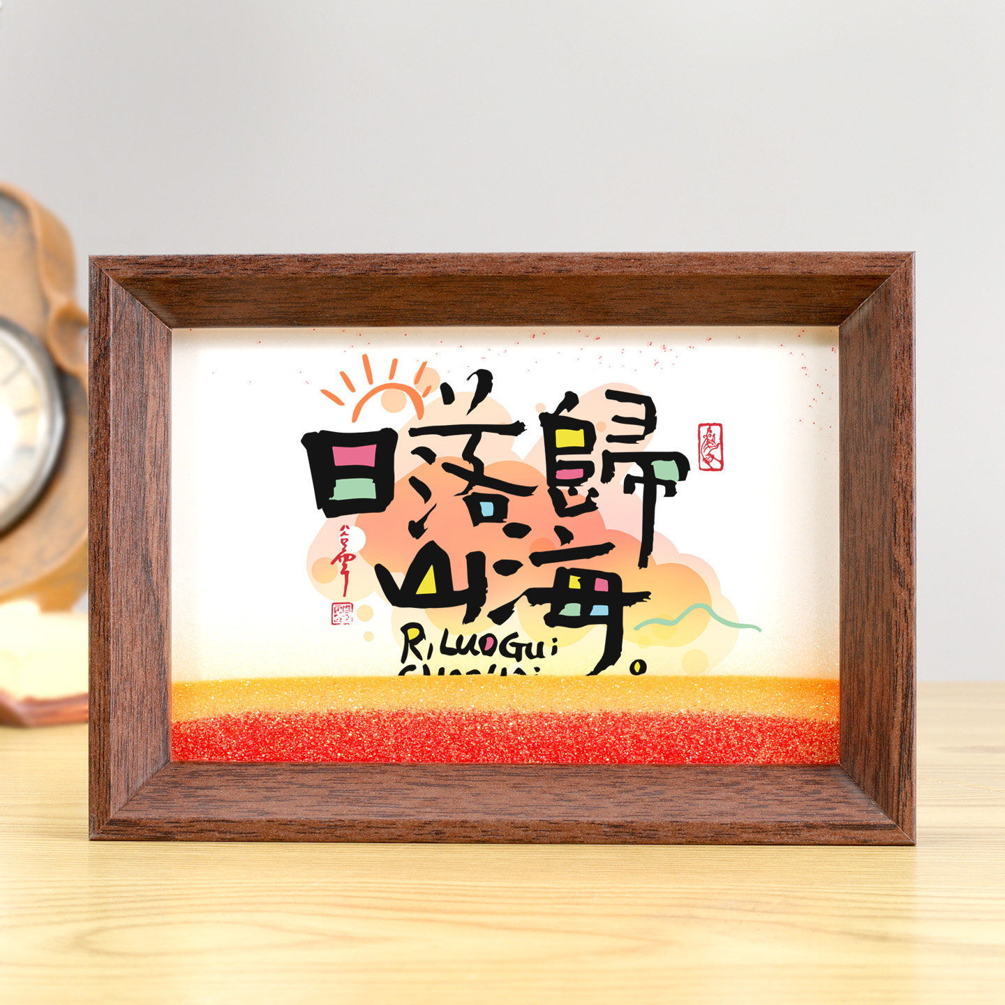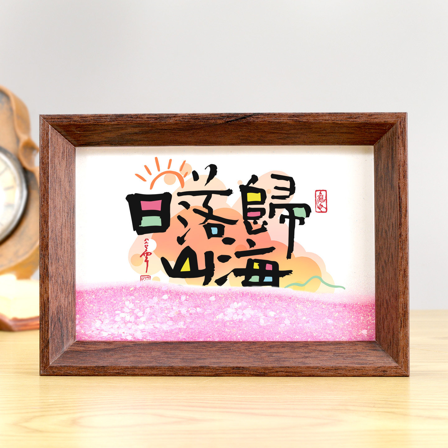 日落归山海流沙书法相框国潮新中式创意礼物动态桌面文字沙画摆件