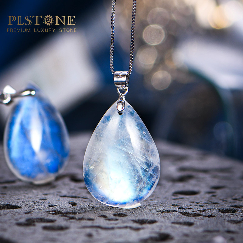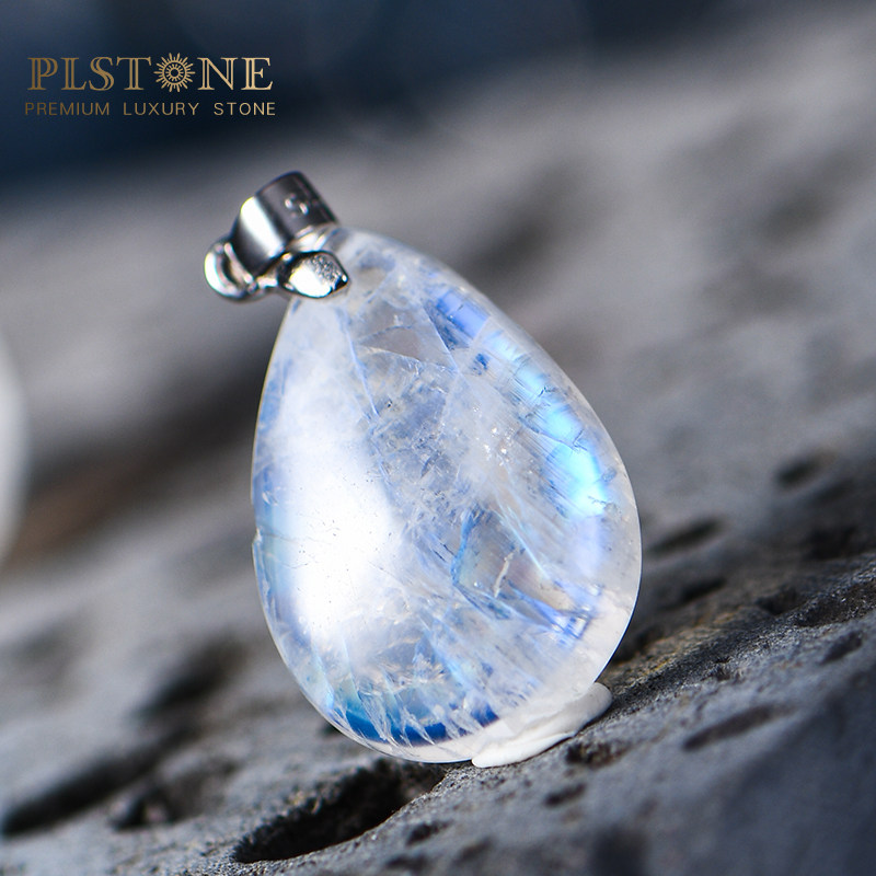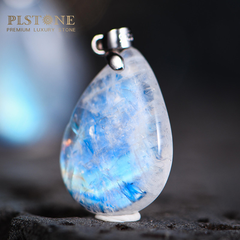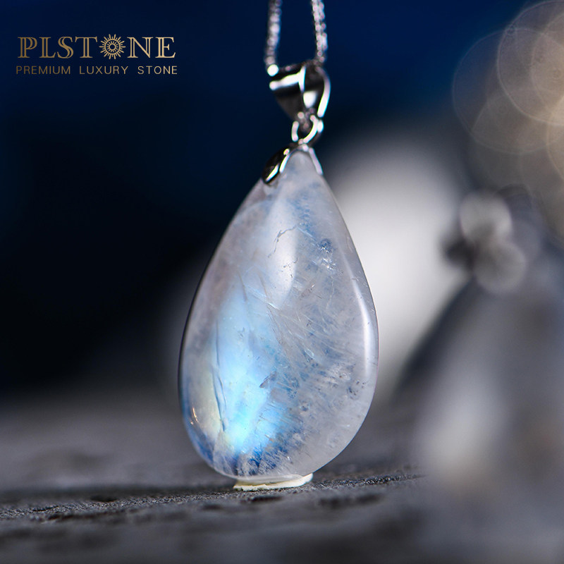 PLSTONE普琳丝天然斯里兰卡玻璃体冰种强蓝光月光石裸石吊坠项链