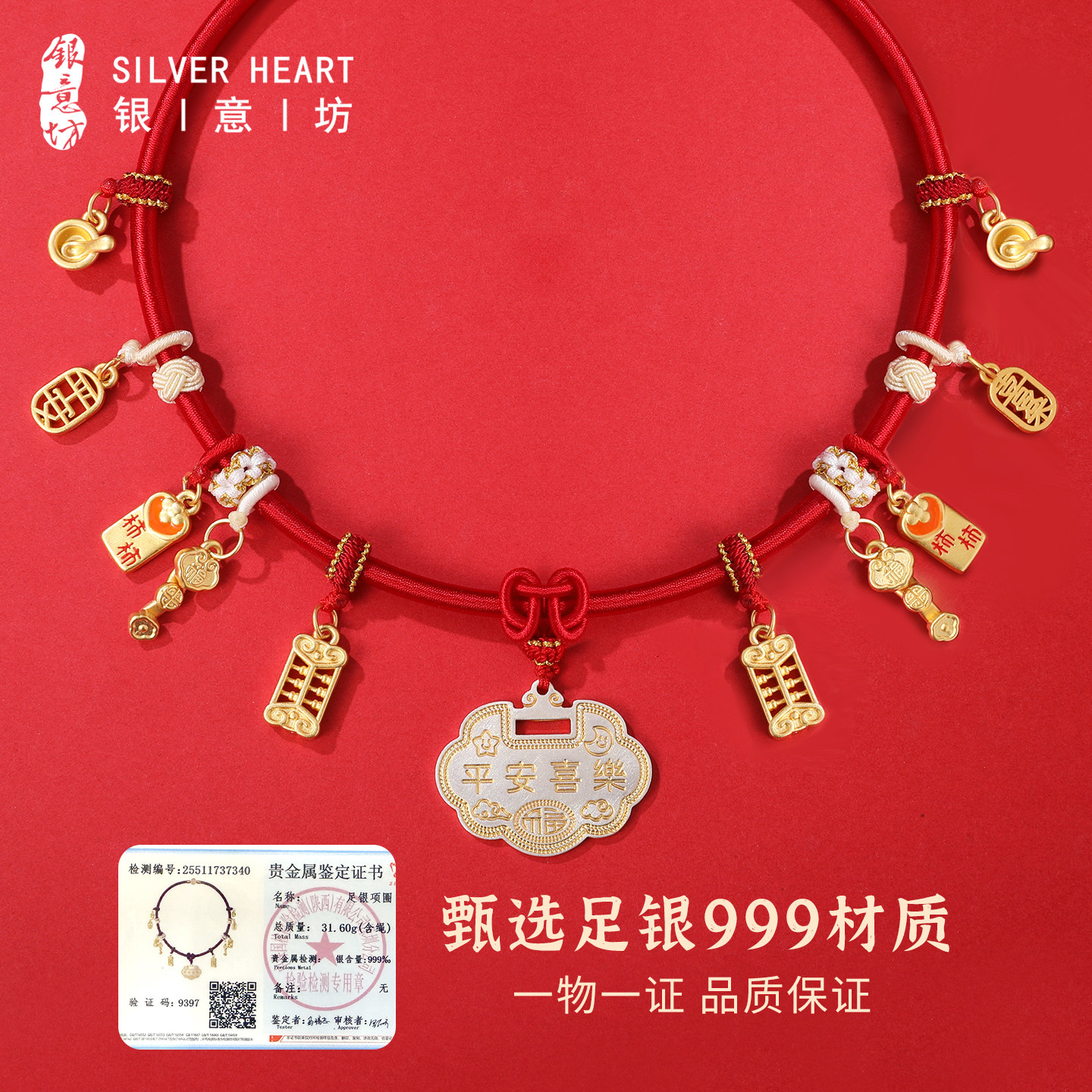描金银锁纯银宝宝长命锁婴儿银项圈999足银实心吊坠满月周岁礼物