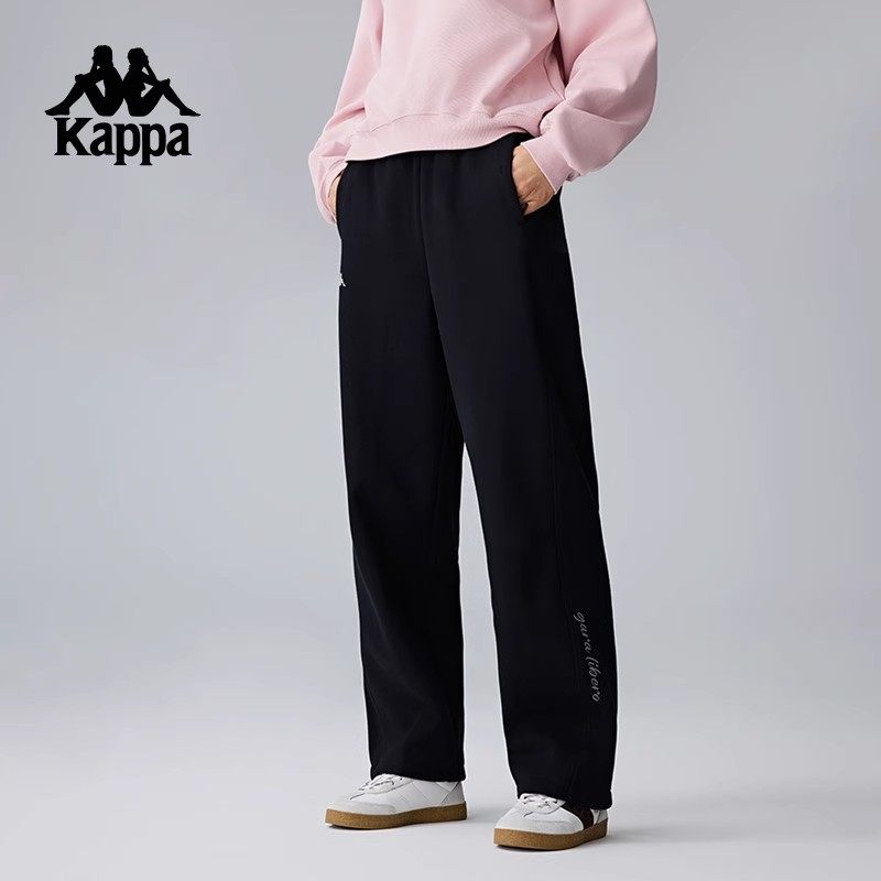 Kappa卡帕背靠背春秋针织长裤女新款复古休闲运动裤保暖直筒裤子