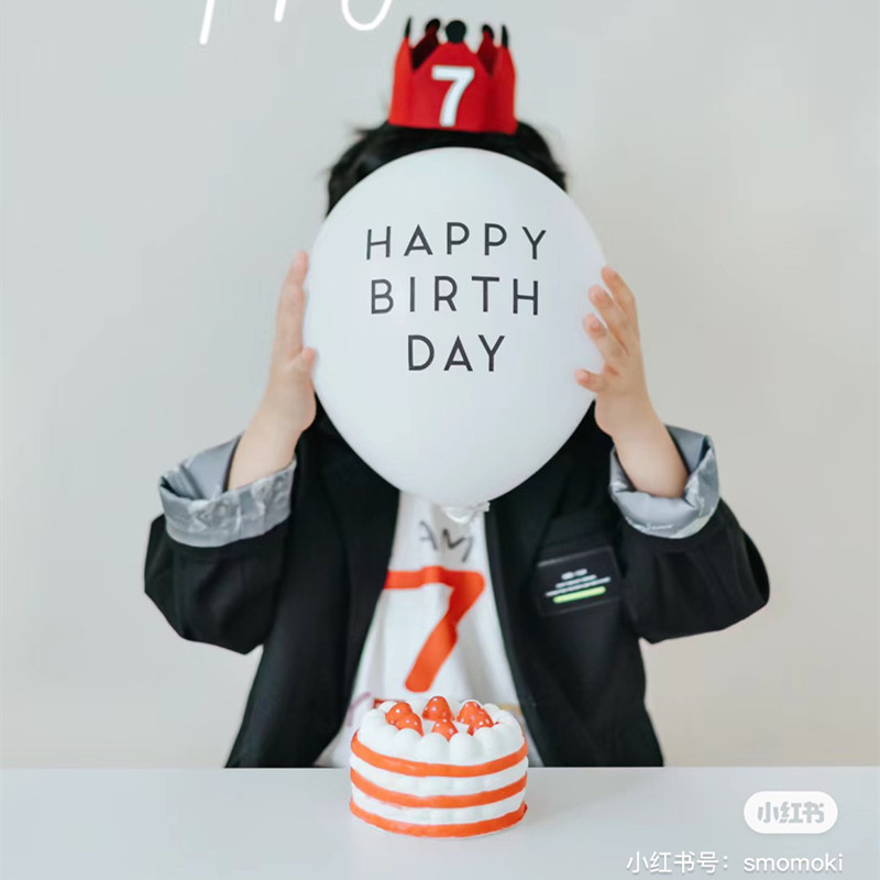 小红书同款红色生日帽子皇冠帽白色字母气球儿童周岁生日拍照道具