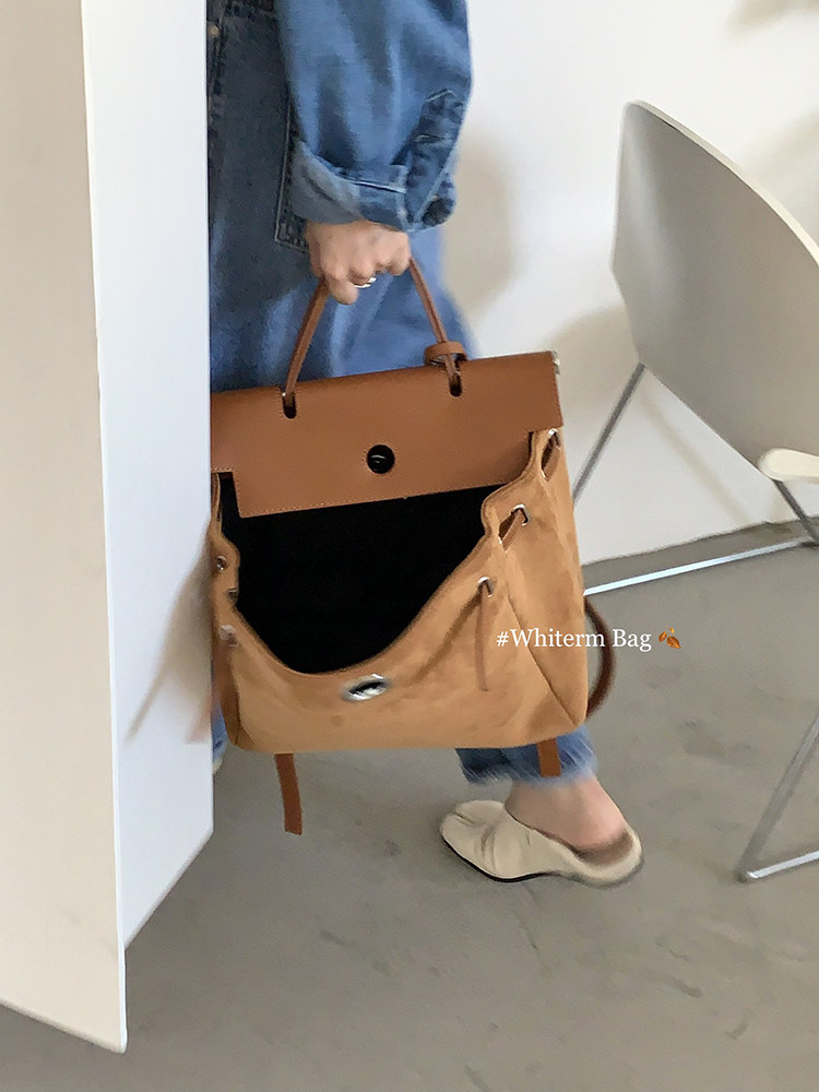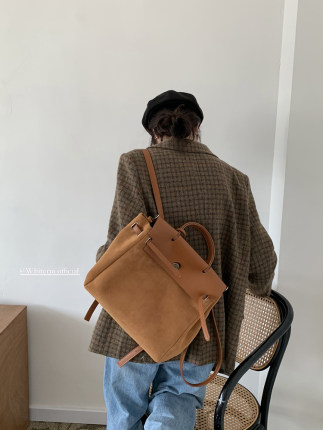 Whiterm 韩版秋冬新款复古绒面双肩包休闲背包百搭单肩女包凯莉包