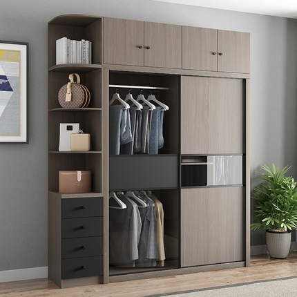 推拉门衣柜现代简约衣柜家用主卧室超大容量出租房用组装玻璃衣橱