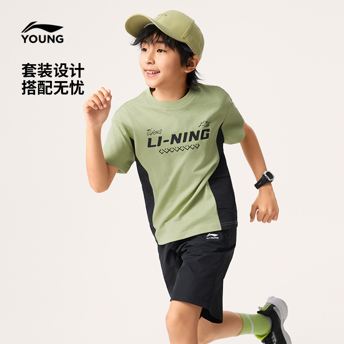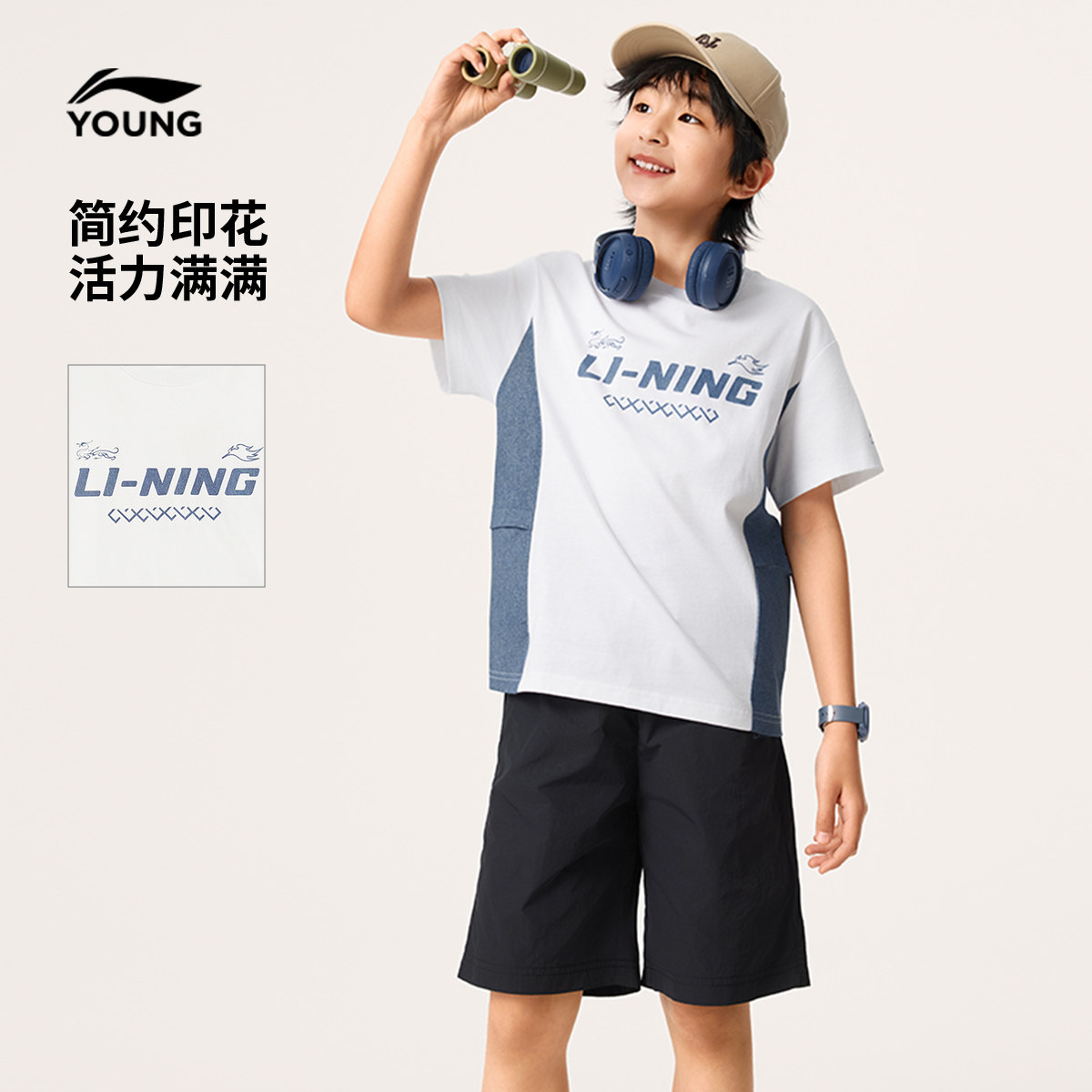 李宁童装套装男女小大童新款运动生活系列防泼水宽松上衣夏季童装