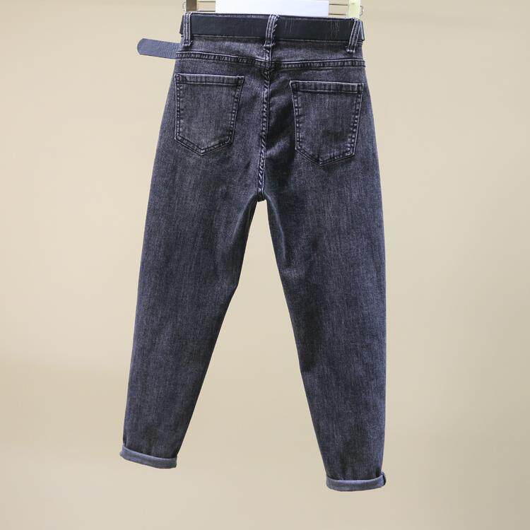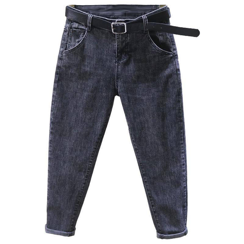 灰色哈伦裤女梨型身材春夏季小个子老爹牛仔裤高腰显瘦大码萝卜裤