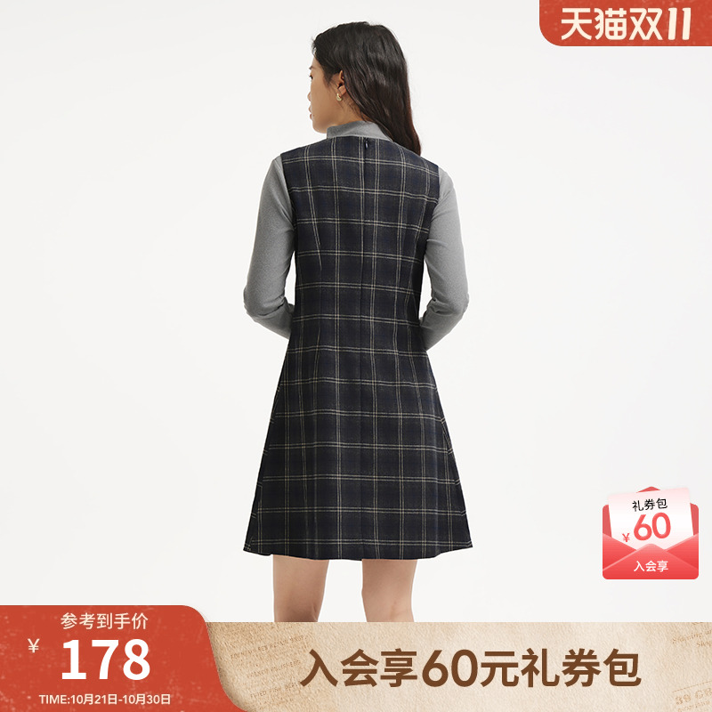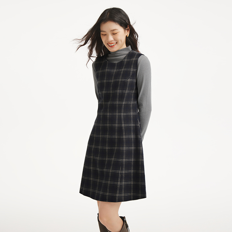 热风格纹连衣裙2025年冬季新款女士格子连衣裙内搭打底背心长裙