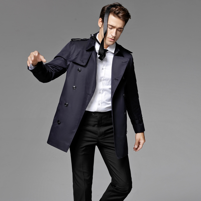 风衣男士2024春秋冬欧美英伦复古双排扣中长款防雨水修身大衣外套