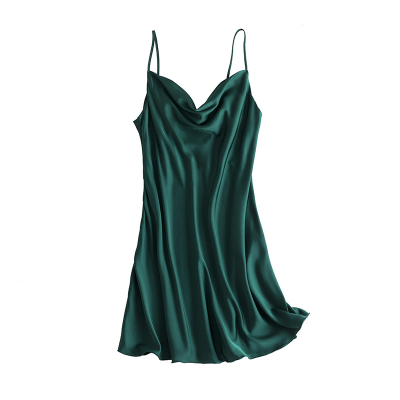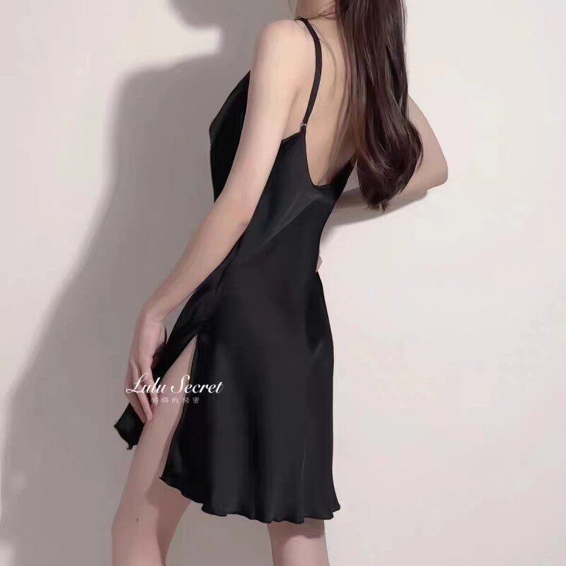 性感冰丝吊带睡裙女夏季2026新款夏天荡领开叉纯欲风睡衣家居服薄