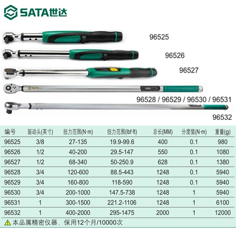 世达电子扭力扳手高精度数显力矩扳手棘轮重型扭矩扳手工具96529