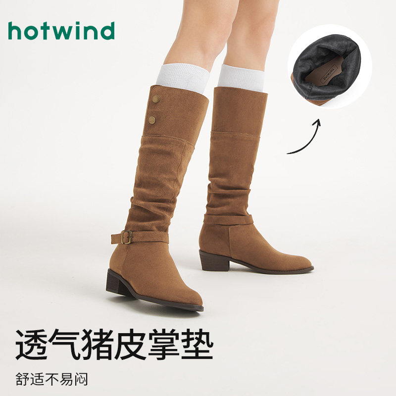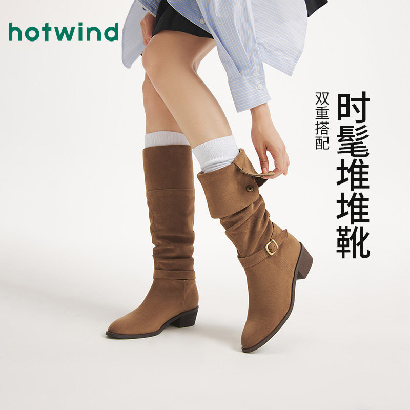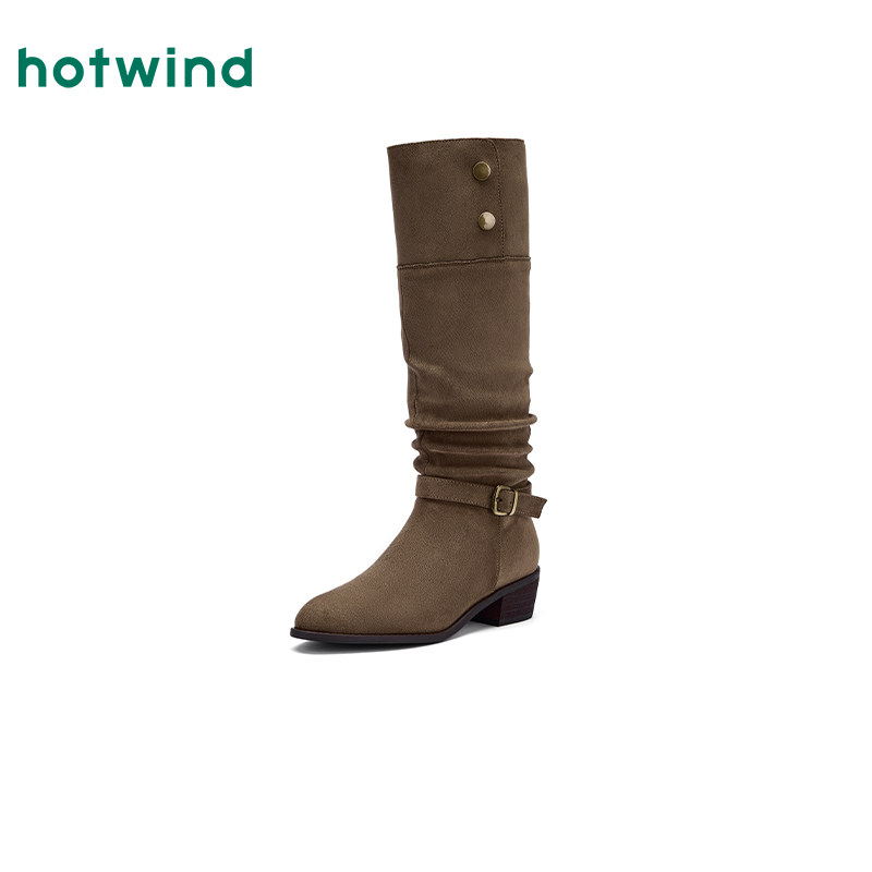 热风复古长筒靴女2025年秋季新款潮酷时尚靴粗跟时装靴子尖头女靴