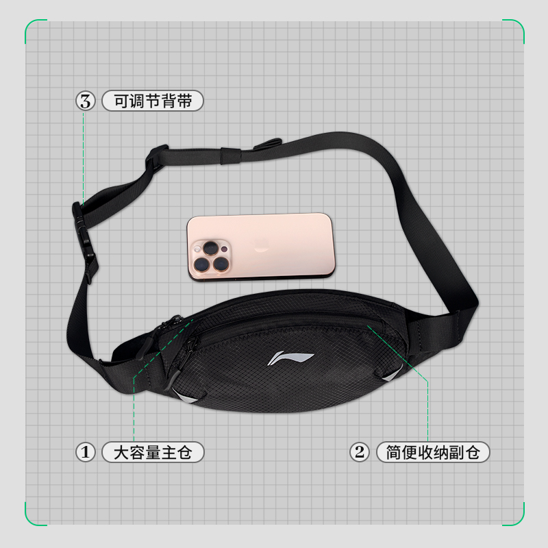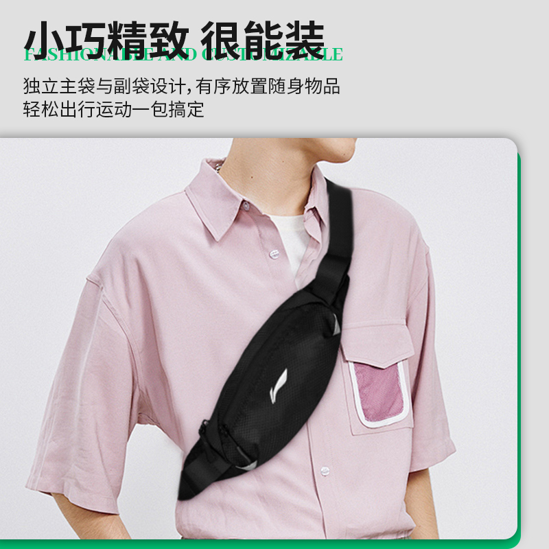 李宁腰包斜挎包男运动跑步健身手机腰包大容量女旅游户外单肩胸包