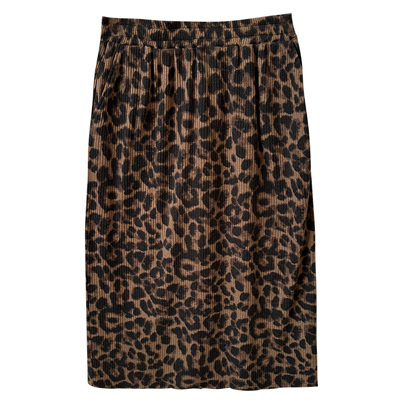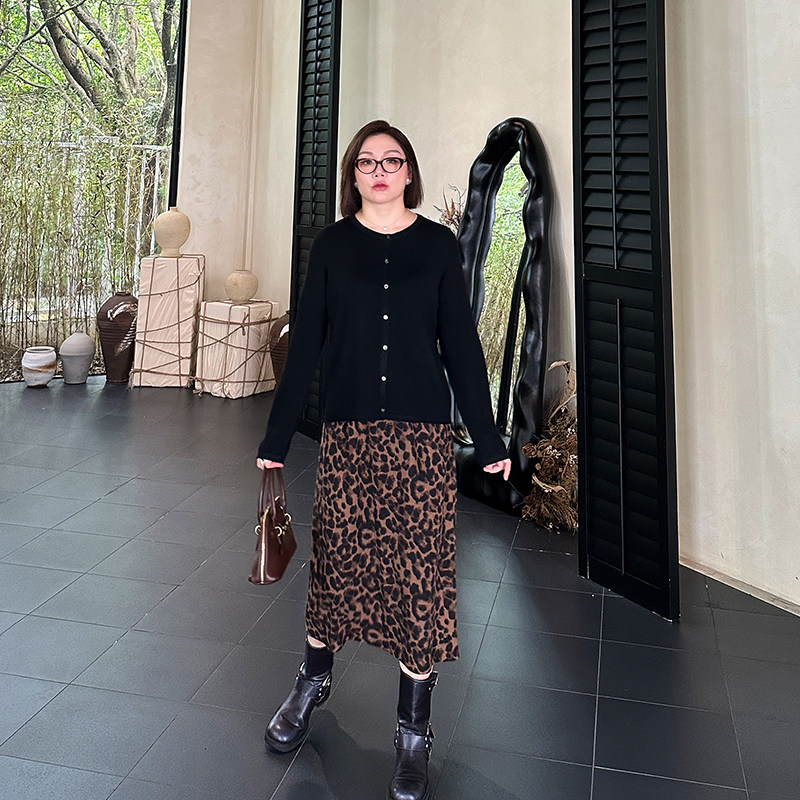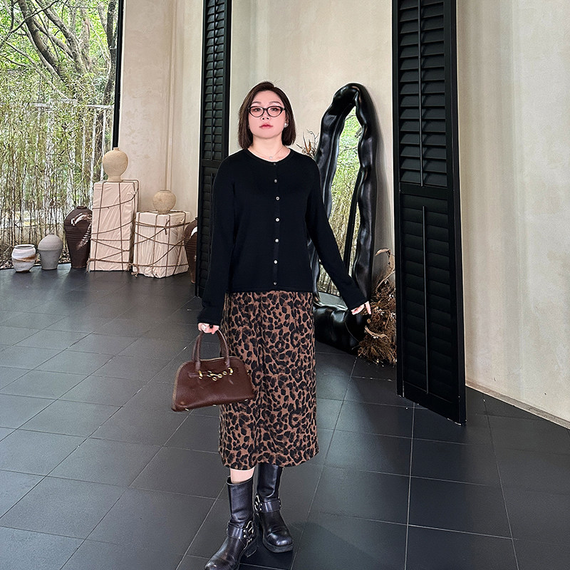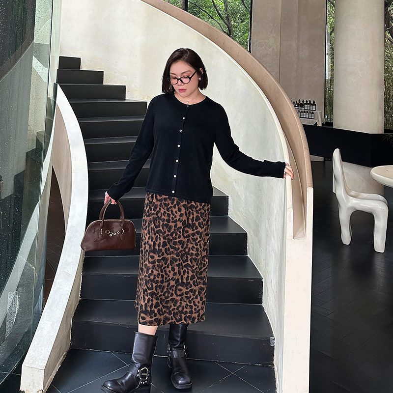 大码女装中长款半身裙2025年秋冬胖妹妹mm显瘦百搭豹纹开叉裙
