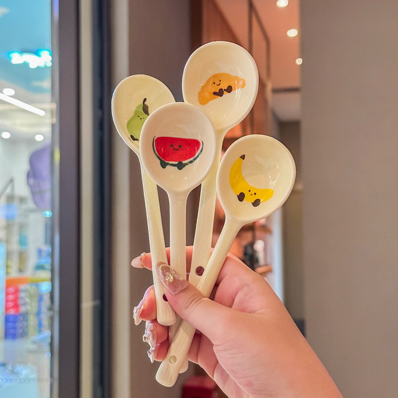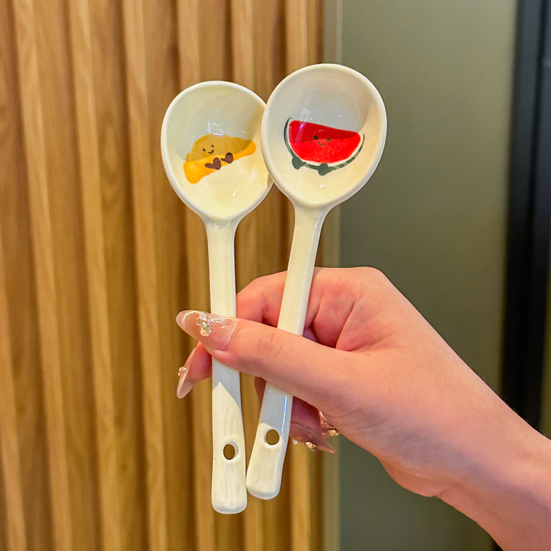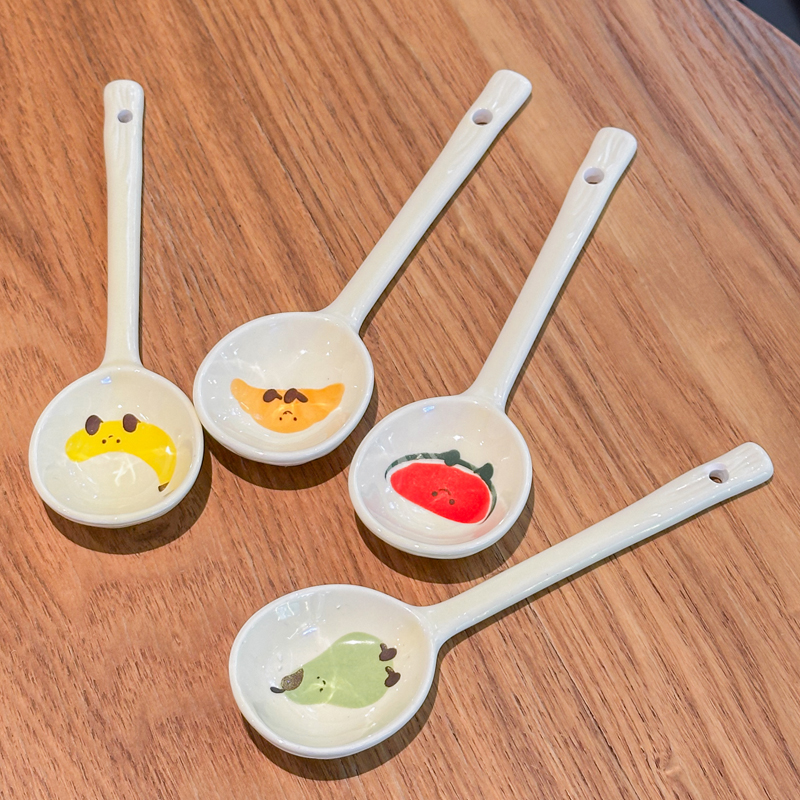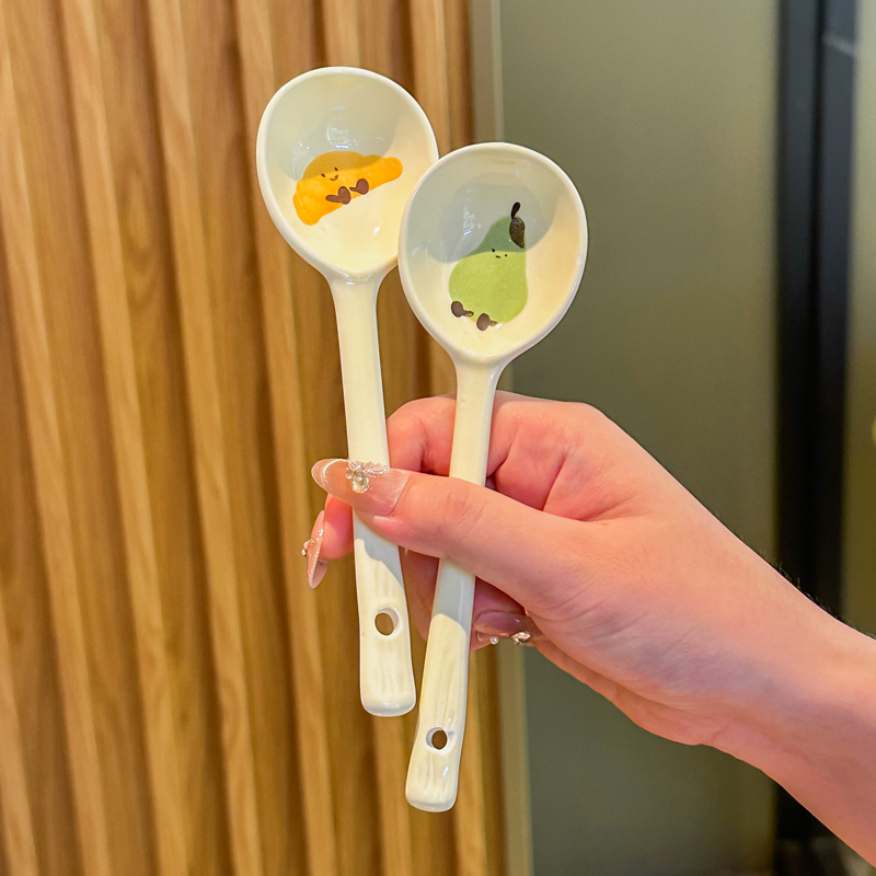 可爱水果陶瓷小勺子个人专用长柄盛汤勺釉下彩汤匙饭勺高颜值调羹