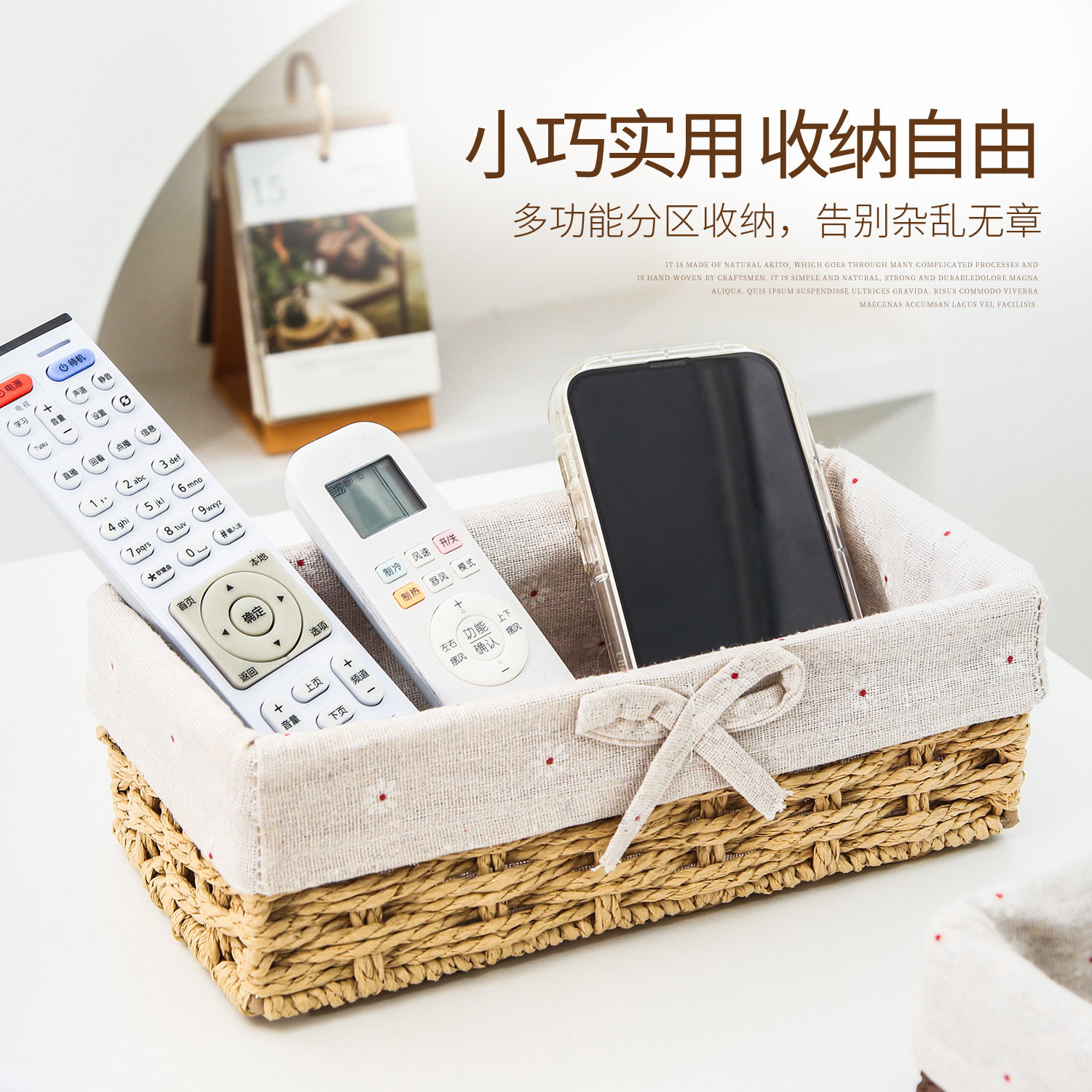 窄缝收纳篮桌面零食遥控器收纳盒床头仿藤编织小杂物篮夹缝收纳筐