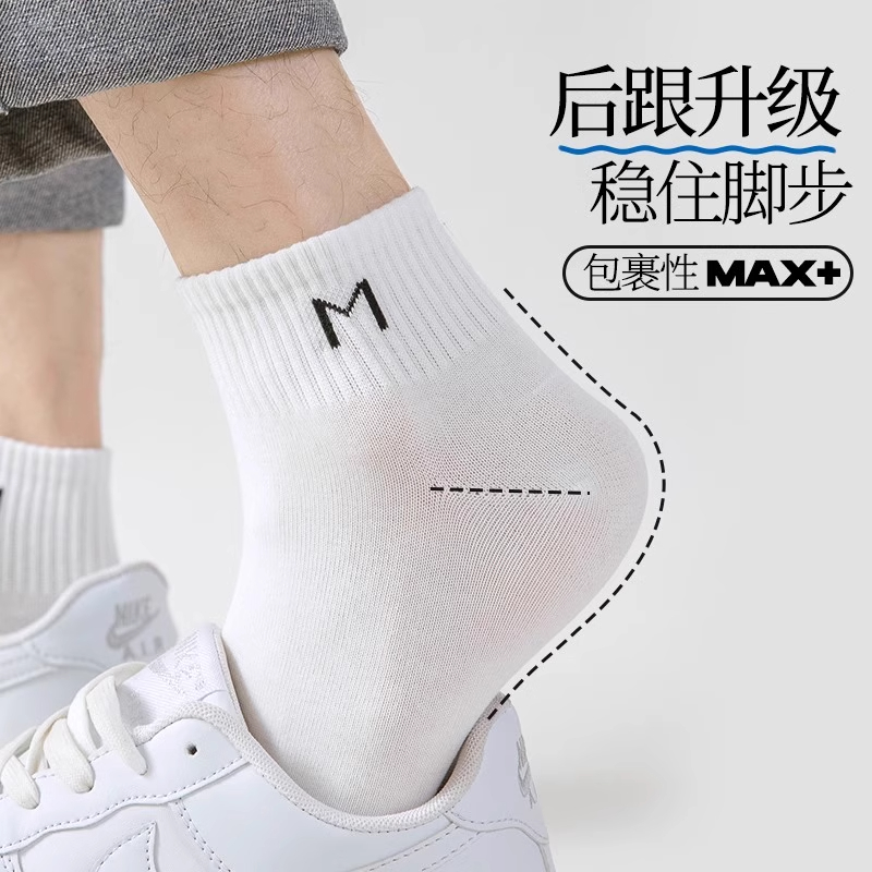 诸暨袜子男春秋季纯棉防臭短袜透气运动袜男款中筒袜白色黑色吸汗
