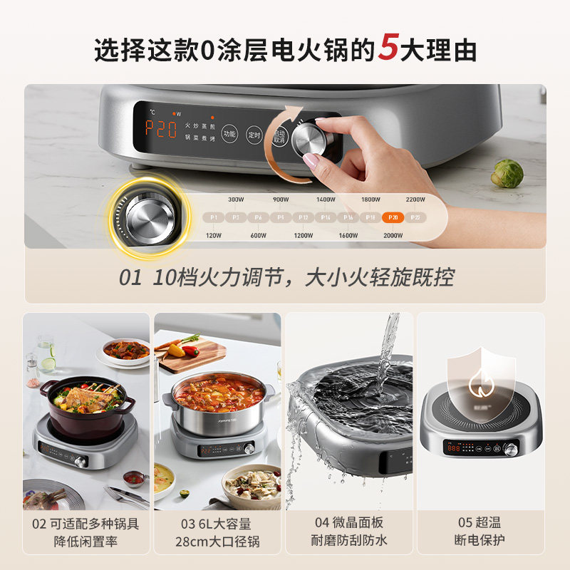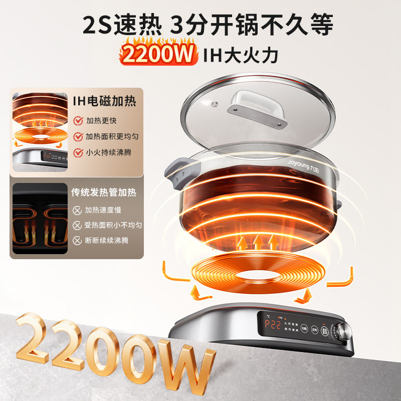 九阳电煮锅IH电热火锅家用多功能0涂层不锈钢分体式大容量电热锅